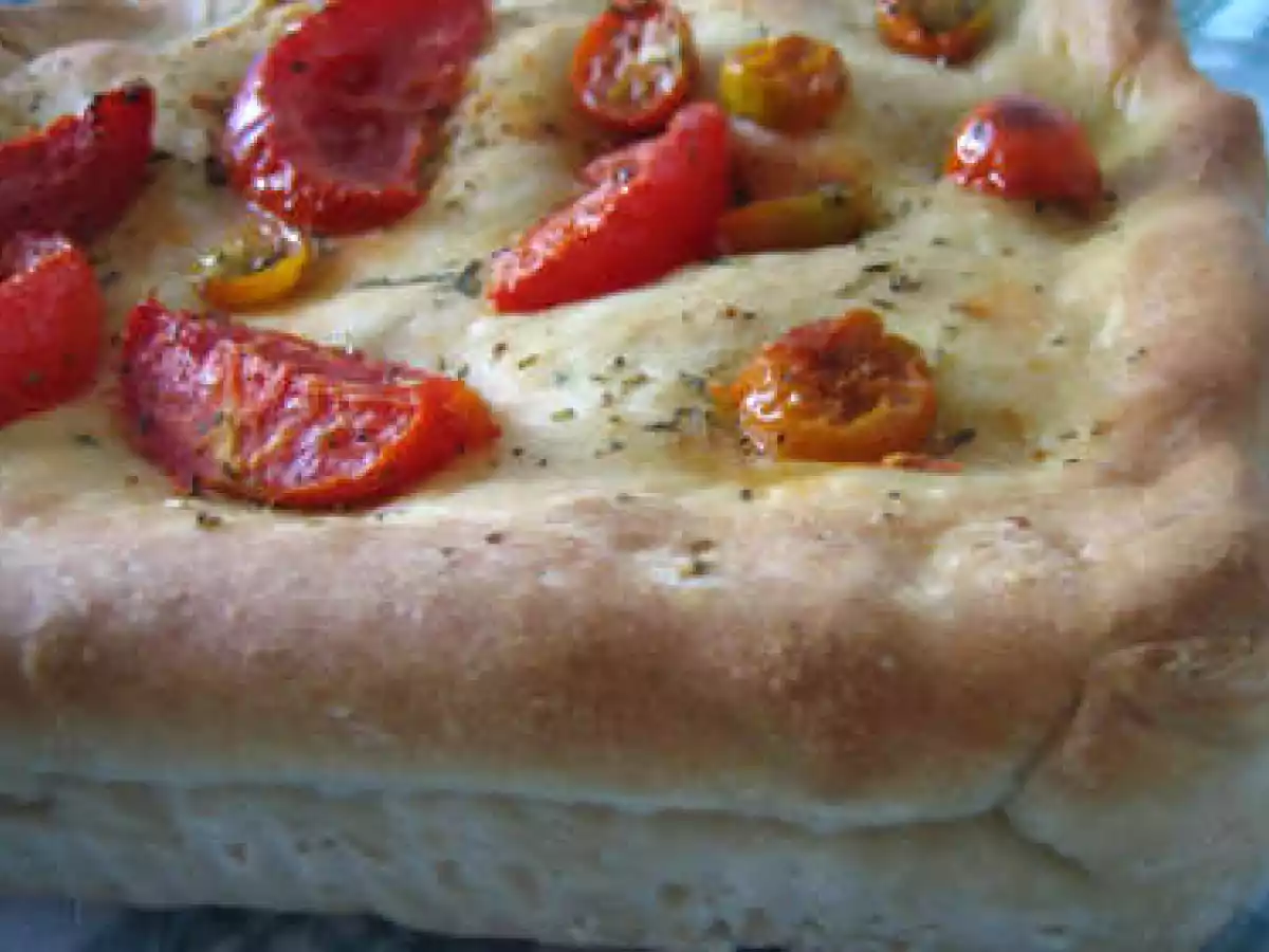 Panfocaccia ripieno di mozzarella-prosciutto-pomodoro Portata principalemedia2 h 40 m Invia questa ricetta ad un amico Stampa la ricetta Contatta l'autore della Ricetta Pubblica la foto di questa ricetta Ingredienti 4 Panfocaccia: 400 gr di manitoba 18 gr di lievito di birra (io ho utilizzato quello secco, l'ho fatto sciogliere in un pò di acqua calda salata) 1 cucchiaio di sale 40 gr di burro sciolto 1 o 2 bicchieri di acqua tiepida (regolatevi in conseguenza di come viene l'impasto) Ripieno: 1 mozzarella 4 fette di prosciutto cotto 5 pomodori 30 gr di formaggio morbido basilico prezzemolo erba cipollina sale pepe olio evo origano
