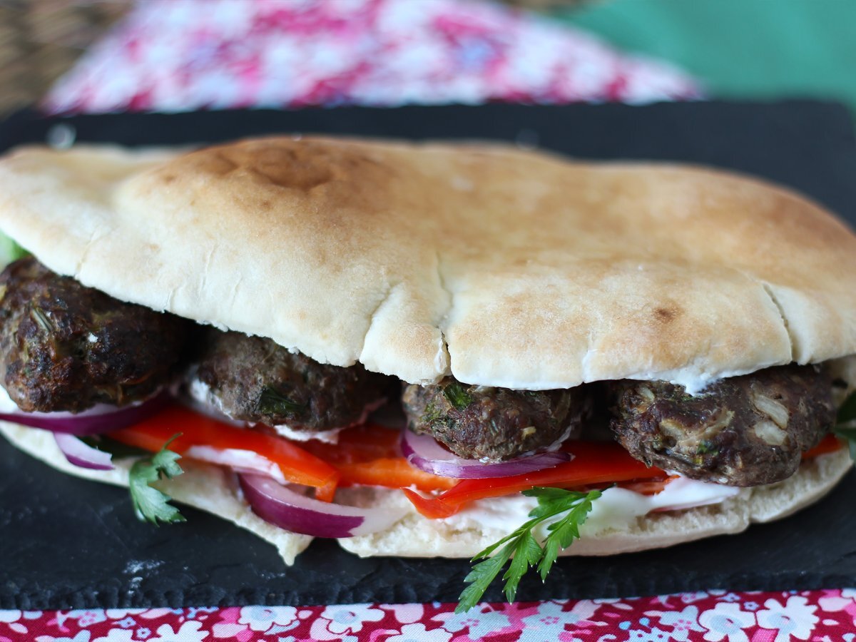 Vi abbiamo già mostrato come si preparano le kofte, perciò oggi le utilizzeremo per preparare un ottimo panino che è una vera e propria istituzione tra gli street food turchi. Mentre cuociono le polpette turche non vi resta che preparare la fresca salsa yogurt che vi servirà per farcire il panino. Si aggiunge qualche ortaggio (in questo caso abbiamo utilizzato cipolla rossa e peperoni), si condisce con succo di limone e si serve subito il panino caldo in tavola. Provate la ricetta quando avete voglia di una cena sfiziosa e saporita, scriveteci nei commenti cosa ne pensate!