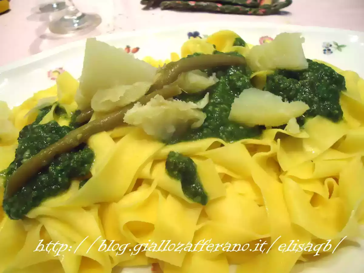 Nel frattempo lessare le patate e cuocere le pappardelle. Una volta cotte condirle con patate a tocchetti, fagiolini e pesto.