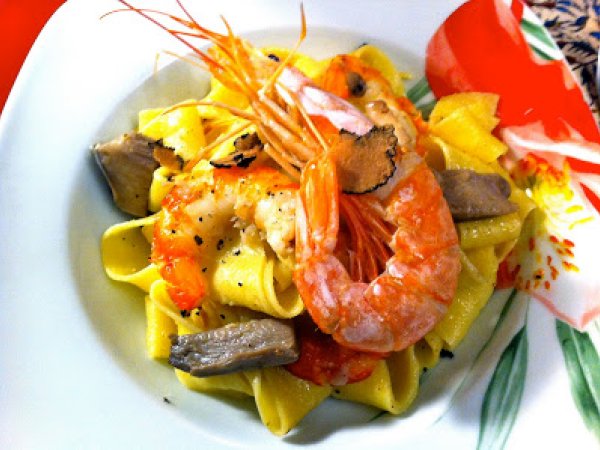 Ideale per chi cerca un primo piatto dal sapore particolare. Le Pappardelle con gamberoni, funghi e tartufo sono da provare assolutamente!