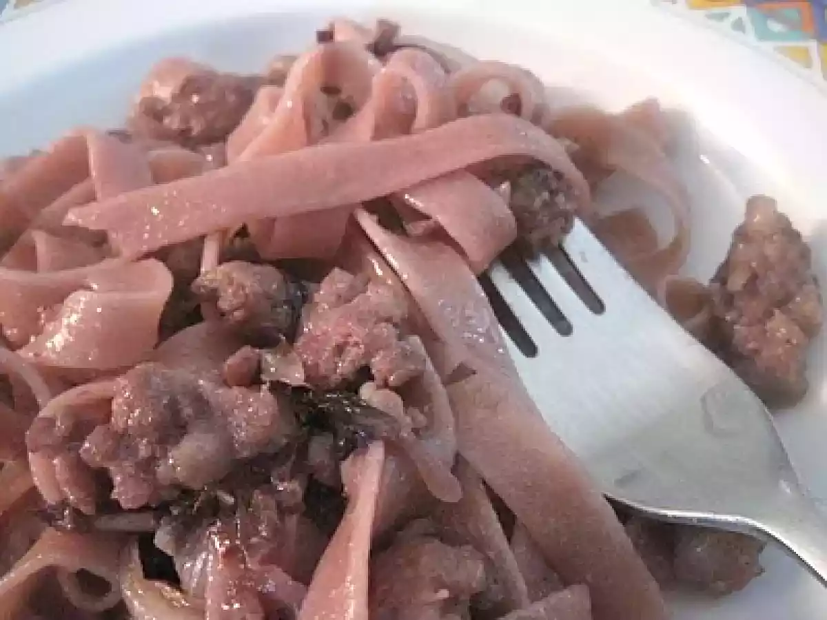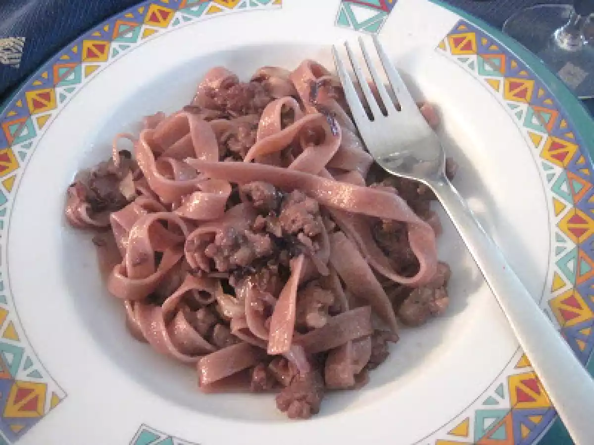 Pasta al chianti con radicchio rosso e salsiccia PrecedenteProssimo Portata principalefacile40 min Invia questa ricetta ad un amico Stampa la ricetta Contatta l'autore della Ricetta Pubblica la foto di questa ricetta Ingredienti 4 360 g di pasta al Chianti 3 salsicce fresche toscane mezzo cespo di radicchio rosso una bottiglia di Chianti toscano uno scalogno