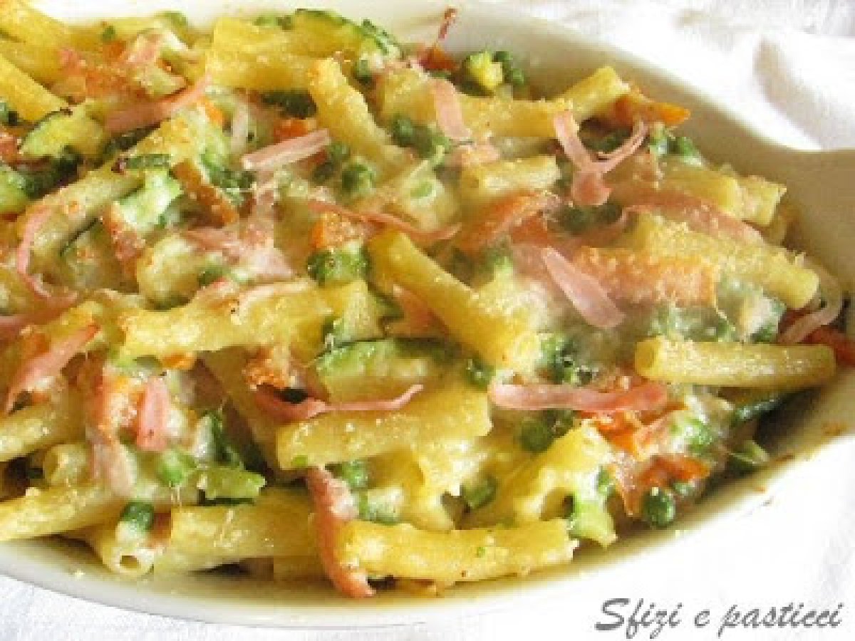 Una gustosa pasta al forno con prosciutto cotto e verdure. Il primo piatto perfetto per il pranzo della domenica