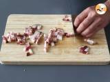 Poi tagliate le fette di guanciale a listerelle di circa 1 cm di larghezza (dividetele a metà se vi sembrano troppo lunghe)