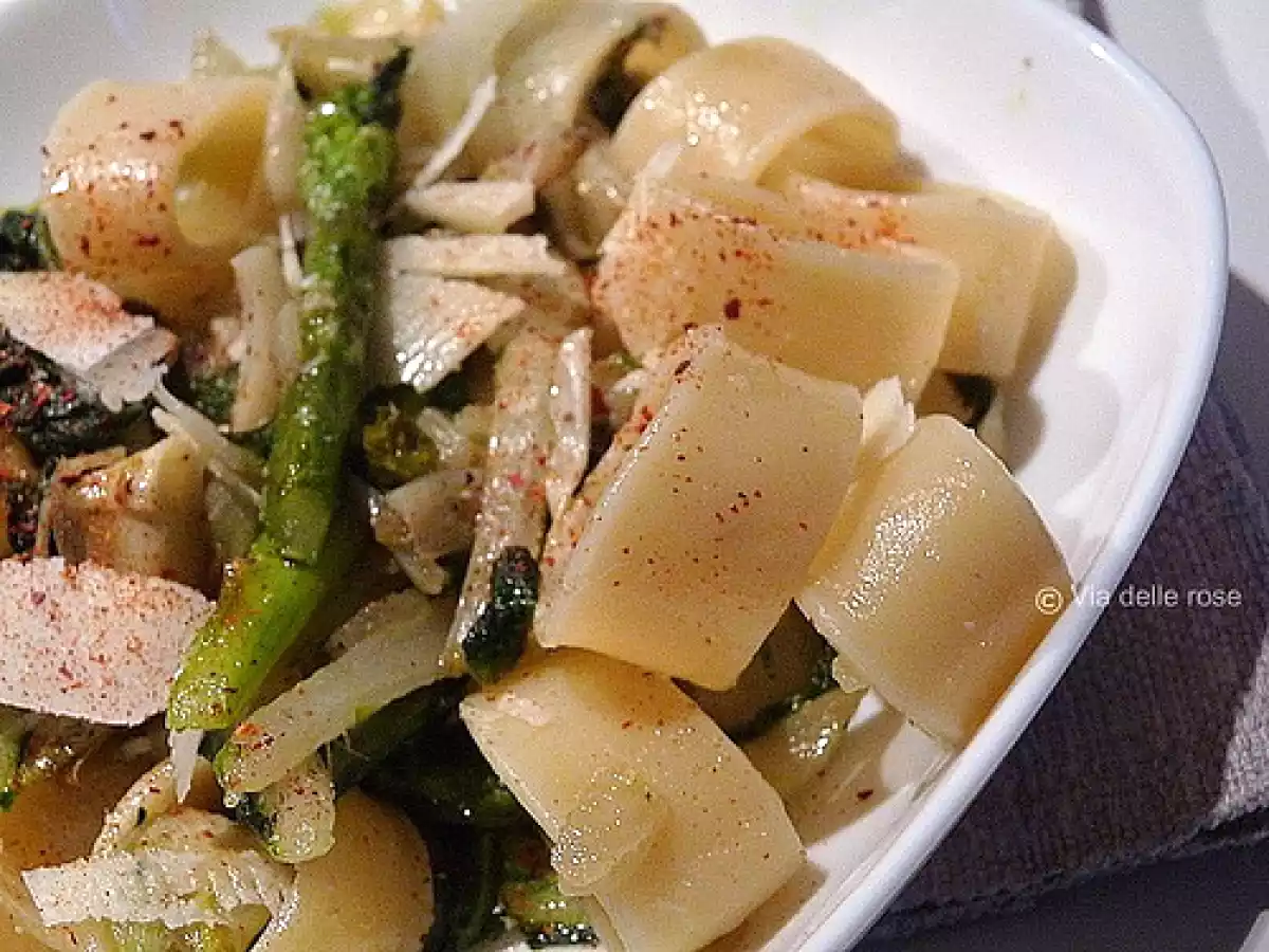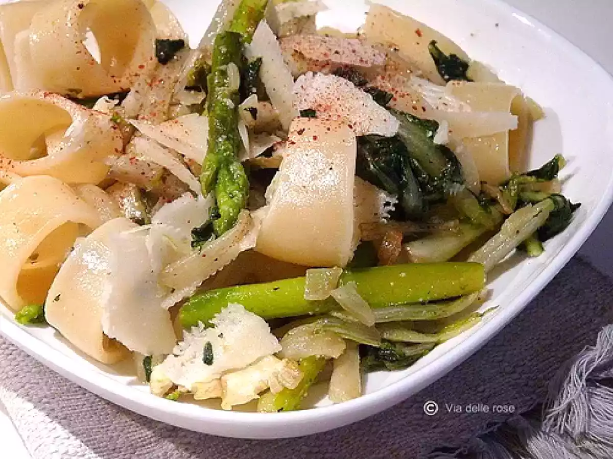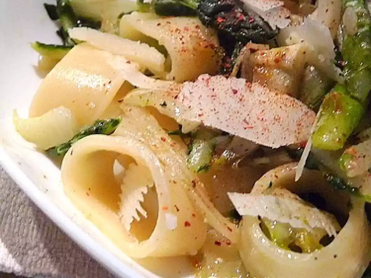 Pasta alle bietole, finocchi, asparagi e...... PrecedenteProssimo Portata principalefacile1 ora Invia questa ricetta ad un amico Stampa la ricetta Contatta l'autore della Ricetta Pubblica la foto di questa ricetta Questo piatto è tutto semplicemente incredibile, un gusto rifinisce! Ingredienti 6 500 g di paste corte 1 colpi di bietole 1 mazzo di asparagi verdi 1 colpi di cipolle nuove 1 finocchio afferrato di zenzero in polvere afferrato di peperoncino in polvere 200 g di pecorino romano 10 l d'olio d'olive sale e pepe