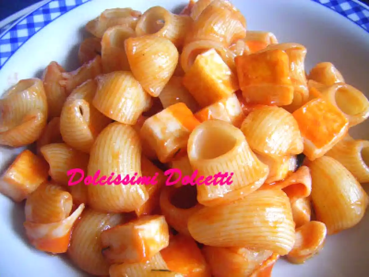 Pasta con surimi al pomodoro Portata principalefacile25 min488 Kcal Invia questa ricetta ad un amico Stampa la ricetta Contatta l'autore della Ricetta Pubblica la foto di questa ricetta Ingredienti 4 400 g di pasta 300 g di surimi congelato 200 ml di passata di pomodoro basilico erba cipollina olio sale peperoncino