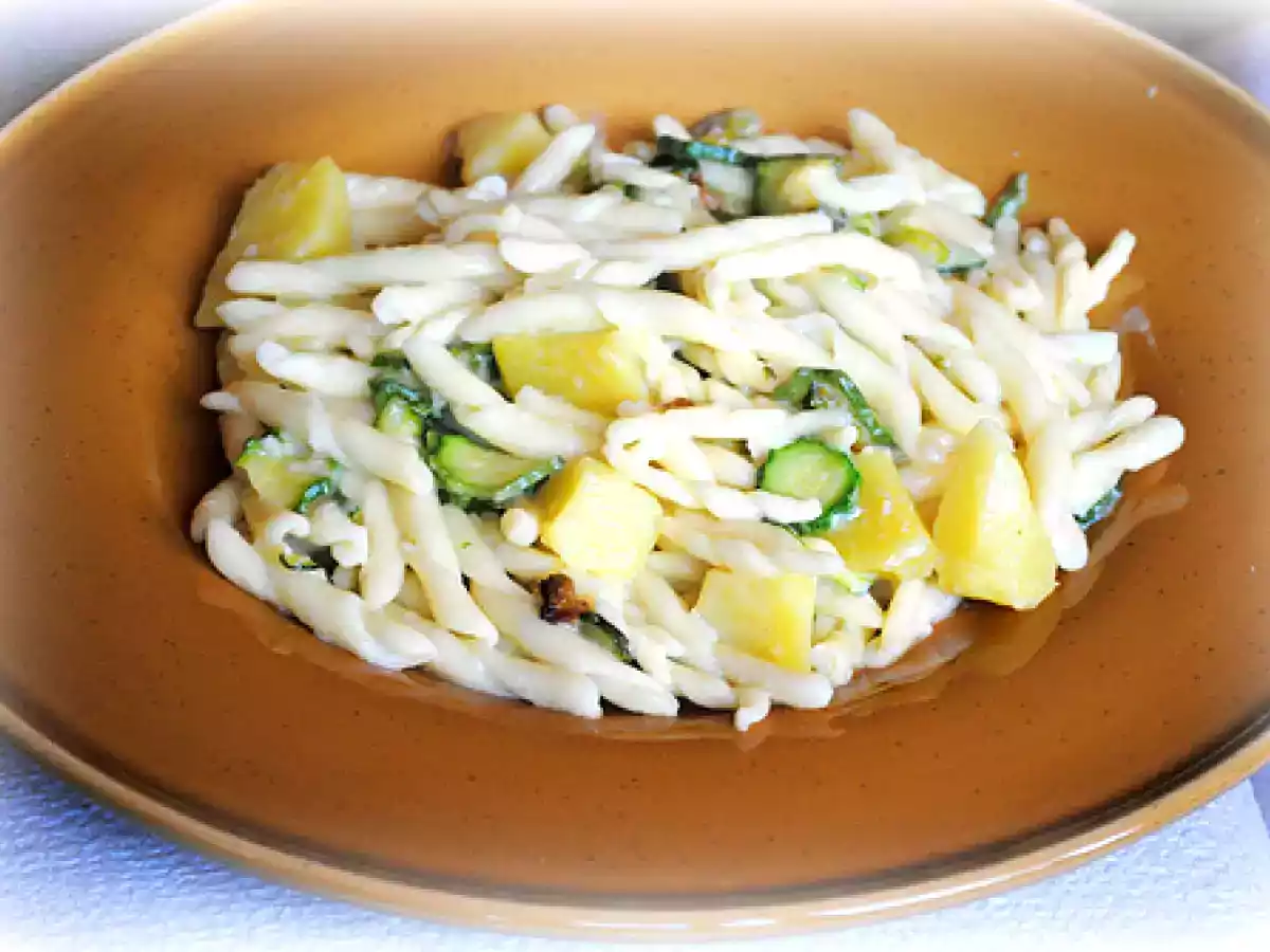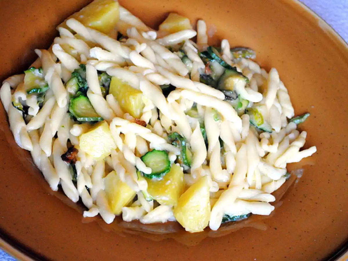 Pasta con zucchine, patate e stracchino PrecedenteProssimo Portata principalefacile35 min1645 Kcal Invia questa ricetta ad un amico Stampa la ricetta Contatta l'autore della Ricetta Pubblica la foto di questa ricetta Ingredienti 2 6 zucchine romanesche 1 grossa patata 220 g stracchino 600 g pasta di semola fresca olio extravergine sale un pugno di parmigiano grattugiato