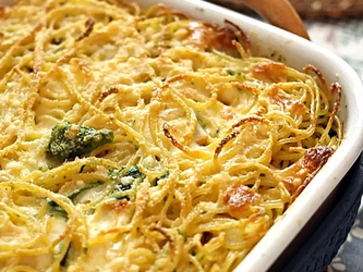 Pasta e broccoli al forno PrecedenteProssimo Portata principalefacile1 h 10 m Invia questa ricetta ad un amico Stampa la ricetta Contatta l'autore della Ricetta Pubblica la foto di questa ricetta Ottima ricetta vegetariana per la stagione invernale. Da provare assolutamente! Ingredienti 15 1 kg di spaghetti 2 kg di rape 200 g di scamorza fresca 200 g di provola affumicata 8 uova 4 manciate di pecorino di Moliterno Sale pepe olio extravergine di oliva qb