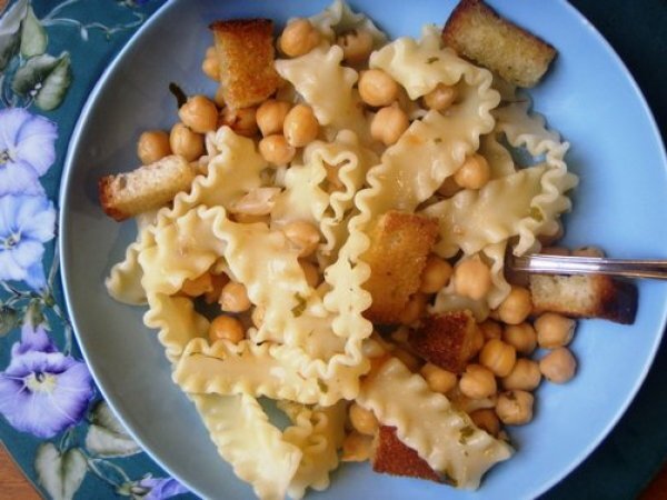 Pasta e ceci con pane fritto PrecedenteProssimo Portata principalefacile1 ora808 Kcal Invia questa ricetta ad un amico Stampa la ricetta Contatta l'autore della Ricetta Pubblica la foto di questa ricetta Ingredienti 2 210 g di pasta formato mafalda 120 g di ceci secchi 1 costa di sedano 2 foglie d'alloro 1 cipolla 10 pomodorini senza semi prezzemolo 2 fette di pane casareccio olio d'extravergine d'oliva sale, pepe Costo stimato: 3.53Euros€ (1.76€/Porzioni)