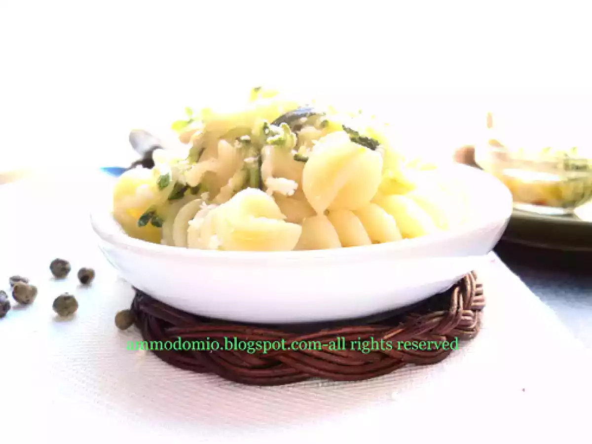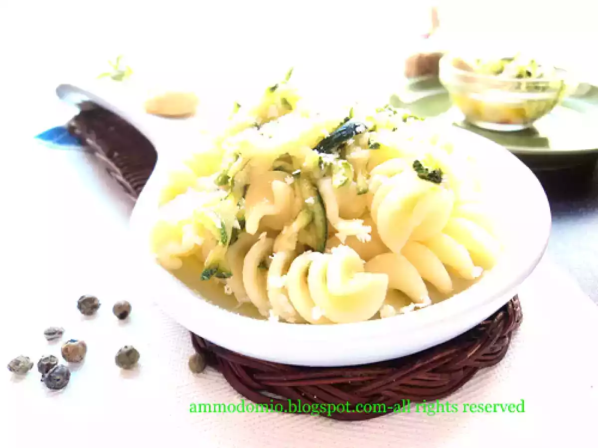 Pasta fredda con zucchine e mandorle vota adesso PrecedenteProssimo Portata principalefacile35 min Invia questa ricetta ad un amico Stampa la ricetta Contatta l'autore della Ricetta Pubblica la foto di questa ricetta Ingredienti 2 300 g di fusilli 3 zucchine 1-2 limoni 1 spicchio di aglio una manciata di mandorle Ricotta marzotica o Cacioricotta olio extra vergine foglioline di mentuccia pepe verde in grani