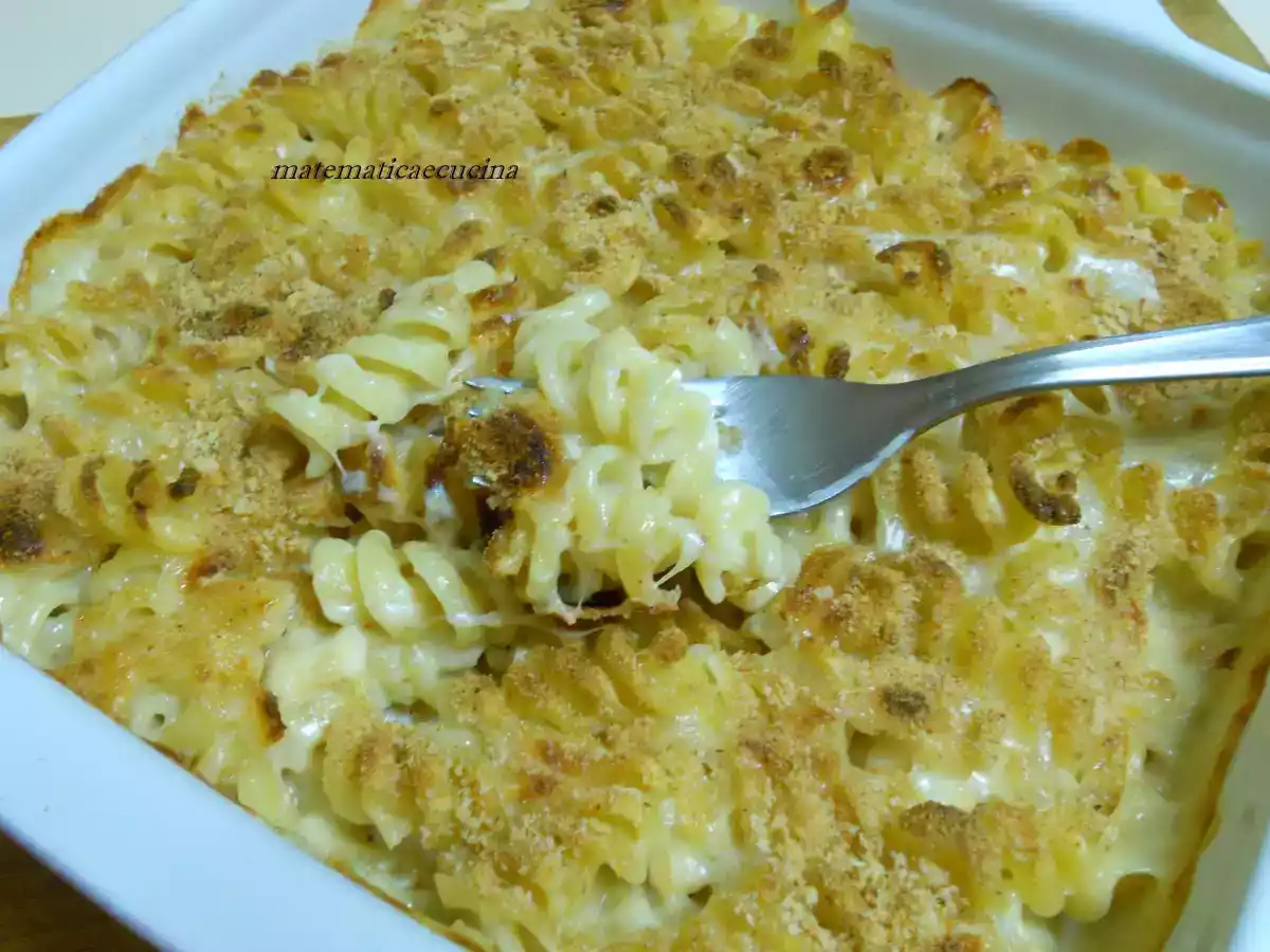 Pasta gratinata con la besciamella Portata principalefacile45 min728 Kcal Invia questa ricetta ad un amico Stampa la ricetta Contatta l'autore della Ricetta Pubblica la foto di questa ricetta Ingredienti 2 160 g di fusilli 200 ml di besciamella per me Besciamella Gran Cucina della CO.DA.P. 100 g di scamorza fresca affumicata 2 cucchiai di parmigiano grattugiato pangrattato