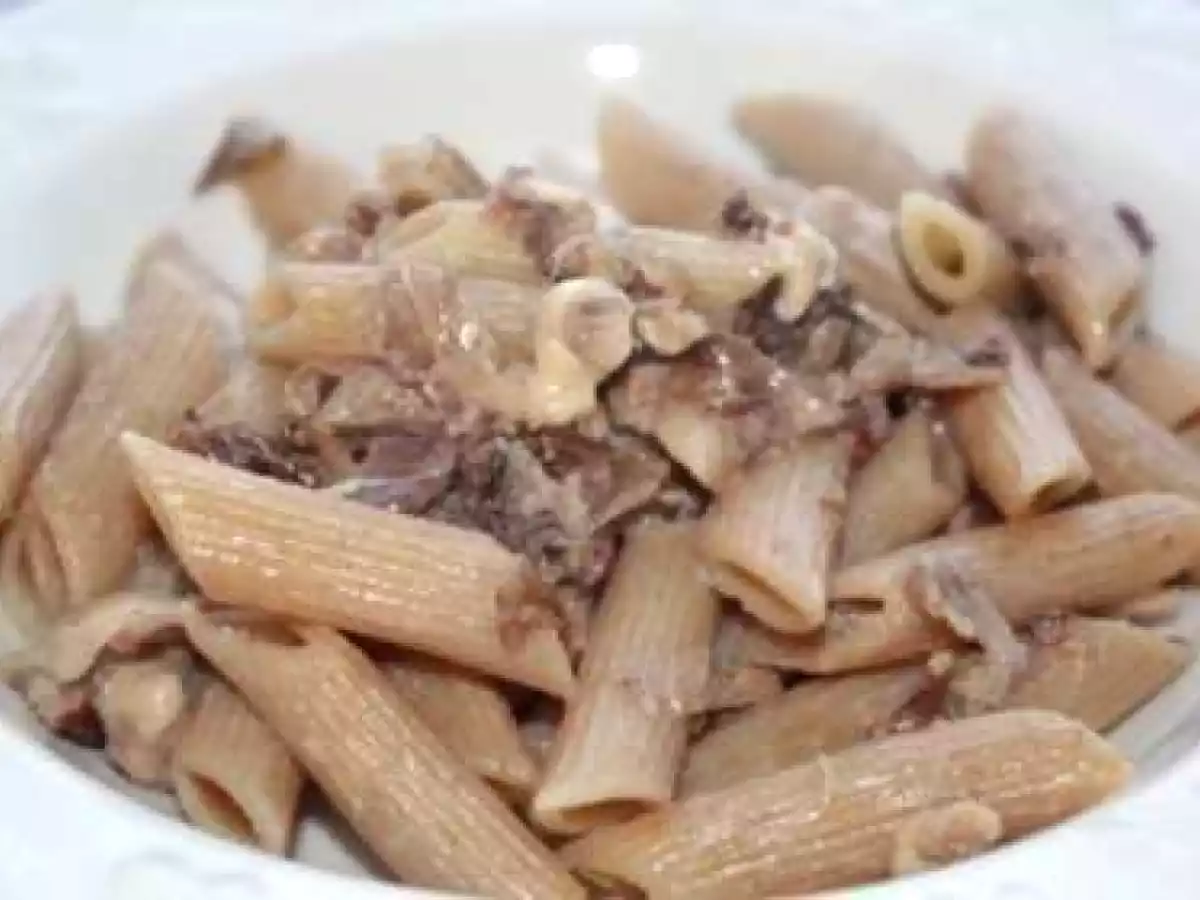 Pasta integrale al radicchio, noci e provola affumicata Portata principalemedia50 min473 Kcal Invia questa ricetta ad un amico Stampa la ricetta Contatta l'autore della Ricetta Pubblica la foto di questa ricetta Ingredienti 4 300 gr di pasta integrale (chi non è a dieta aumenti a piacere :-) ) 1 radicchio tondo piccolino 1 cipolla 10 noci 40 gr di provola affumicata parmigiano q.b. olio e vino bianco q.b. mezzo bicchiere di latte Costo stimato: 5.09Euros€ (1.27€/Porzioni)