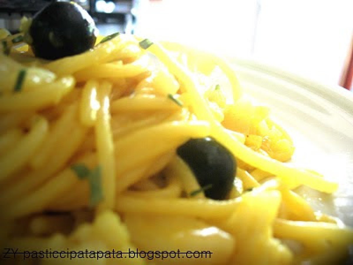 Pasta risottata alla curcuma con cavolfiore e olive nere PrecedenteProssimo Portata principalefacile30 min289 Kcal Invia questa ricetta ad un amico Stampa la ricetta Contatta l'autore della Ricetta Pubblica la foto di questa ricetta Ingredienti 4 200 g spaghetti n.8 750 ml acqua bollente salata / brodo vegetale 2 cucchiaini di curcuma + mezzo di paprika forte 1/2 cipolla 2 cucchiai olio extravergine d'oliva 1/2 cavolfiore piccolo olive nere erba cipollina o prezzemolo fresco Costo stimato: 3.19Euros€ (0.8€/Porzioni)