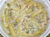 La ricetta originaria prevedeva che il piatto, preparato piuttosto liquido, venisse poi servito in una ciotola coperta con della pasta sfoglia, passata al forno.