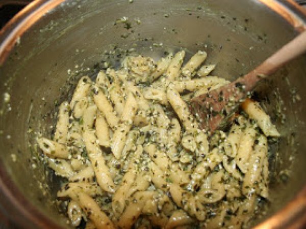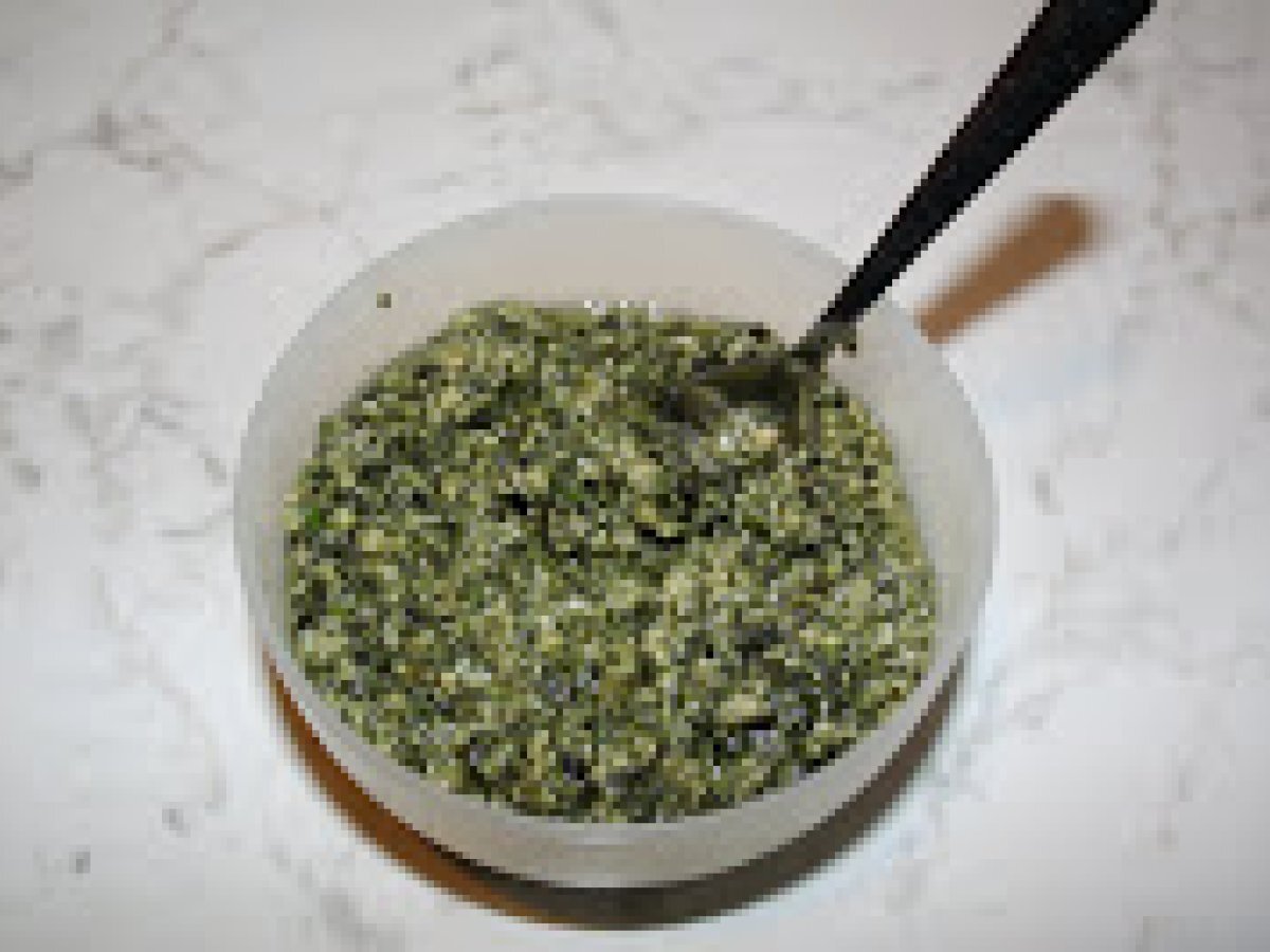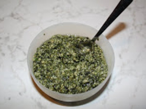 - Dopo aver versato tutto in una ciotola, aggiungi a filo l'olio di soia, mescola con una forchetta finchè risulterà piuttosto morbido e il pesto è pronto per condire la tua pasta.