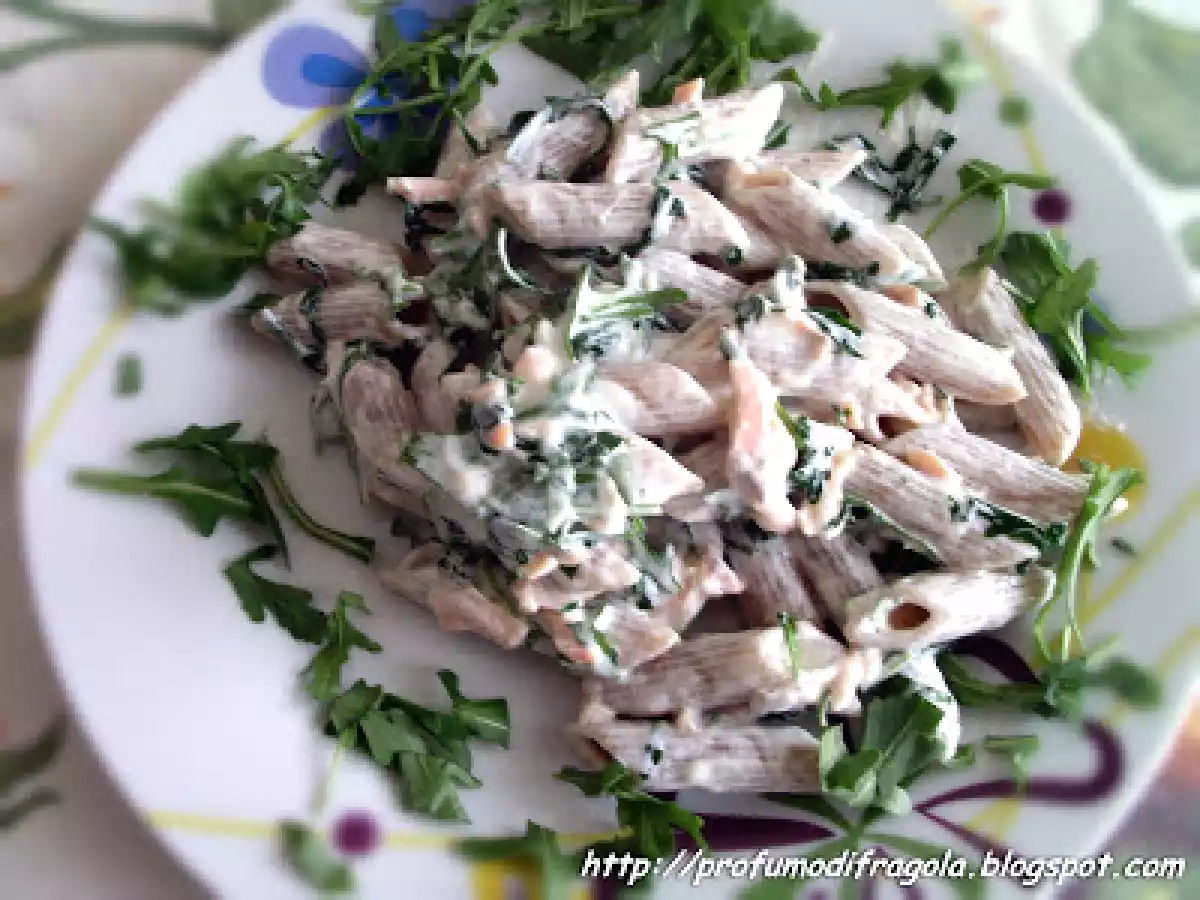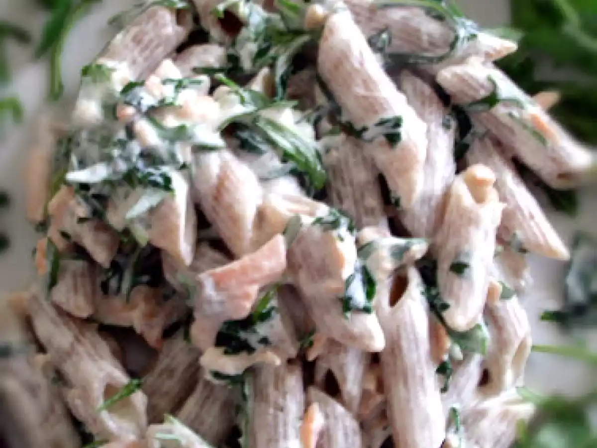 Penne integrali al salmone e rucola PrecedenteProssimo Portata principalefacile50 min Invia questa ricetta ad un amico Stampa la ricetta Contatta l'autore della Ricetta Pubblica la foto di questa ricetta Ingredienti 2 pasta salmone affumicato q.b. rucola q.b. 1 noce di burro 1 confezione di panna 1 pezzo di cipolla sale 1 bicchierino di brandy