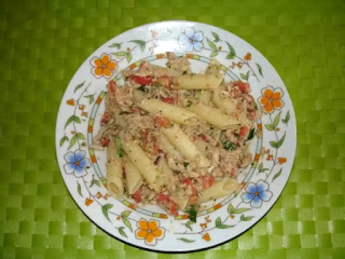 Penne, pomodorini pachino e tonno in crema di zucchine