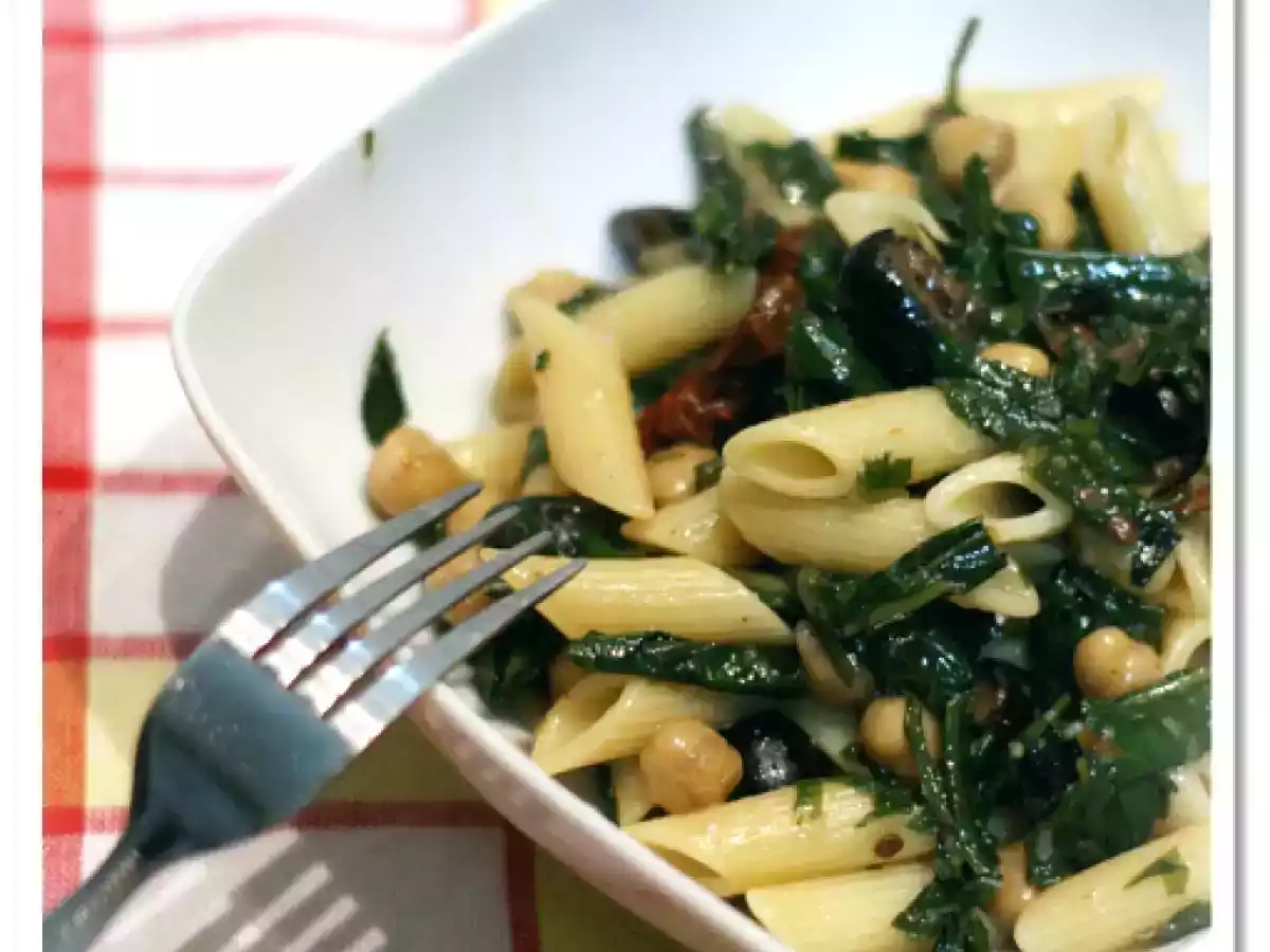 Pennette al tarassaco e ceci vota adesso Portata principalefacile35 min Invia questa ricetta ad un amico Stampa la ricetta Contatta l'autore della Ricetta Pubblica la foto di questa ricetta Ingredienti 2 150 g di pennette 100 g di ceci già lessati 80 g di tarassaco già sbollentato una decina di olive nere già denocciolate 4-5 pomodori secchi olio extravergine di oliva aglio