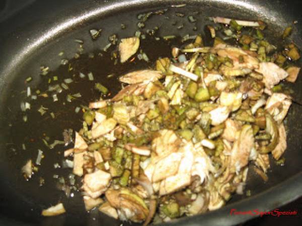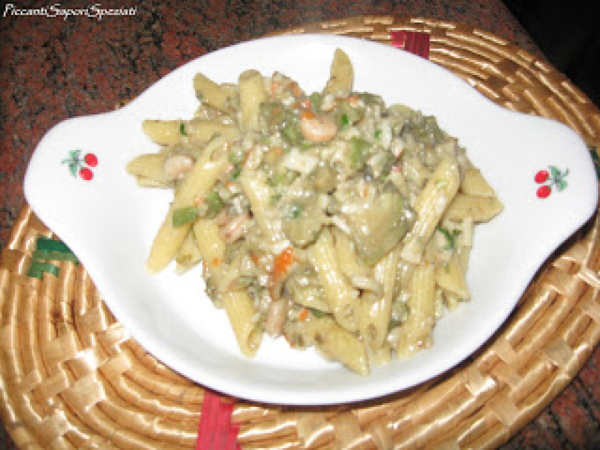 Pennette con cuori di carciofo, gamberi e surimi Portata principalefacile45 min95 Kcal Invia questa ricetta ad un amico Stampa la ricetta Contatta l'autore della Ricetta Pubblica la foto di questa ricetta Ingredienti 4 cipollotto cuori e gambi di carciofo surimi gamberetti latte parmigiano grattugiato prezzemolo sale olio evo peperoncino