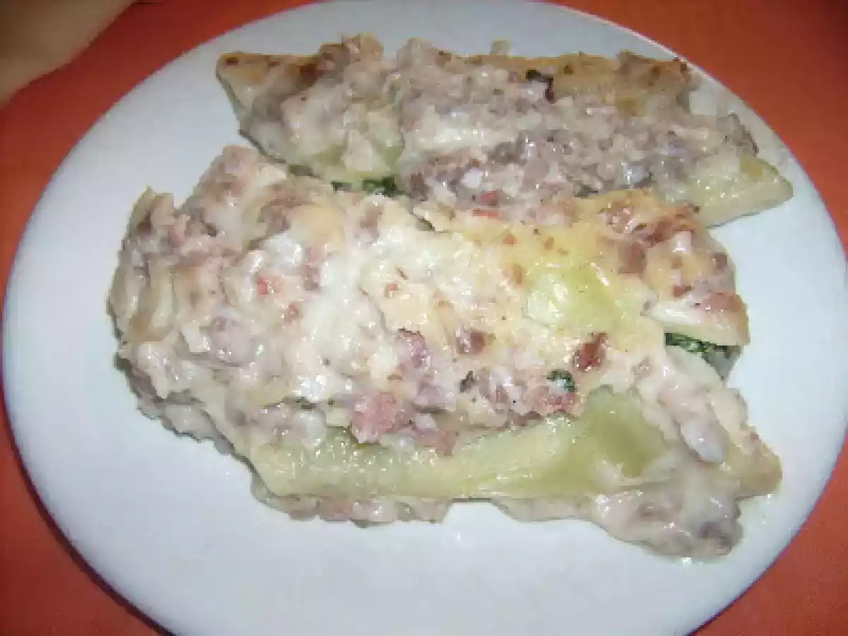 Pennoni ripieni vota adesso Portata principalefacile45 min Invia questa ricetta ad un amico Stampa la ricetta Contatta l'autore della Ricetta Pubblica la foto di questa ricetta Ingredienti 8 500 g di salsiccia fresca vino rosso q.b 250 g di ricotta 300 g di spinaci 100g di grana 150 g di mozzarella 1 lt circa di besciamella (clicca qui per la ricetta) 250 g di pennoni olio q.b. sale q.b. 1 sp d'aglio INIZIAMO