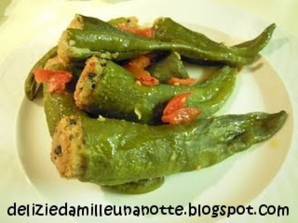 Peperoni ripieni di tonno Portata principalemedia50 min Invia questa ricetta ad un amico Stampa la ricetta Contatta l'autore della Ricetta Pubblica la foto di questa ricetta Ingredienti 4 Ingredienti per 4 persone: 12 peperoni tipo friggitelli ( ma vanno bene anche i peperoni più grandi), 200 gr di tonno, 100 gr di pane ammorbidito con poco latte, 2 cucchiai di parmiggiano, qualche cappero, 3 filetti di alici, una manciata di olive nere, sale e pepe q.b.