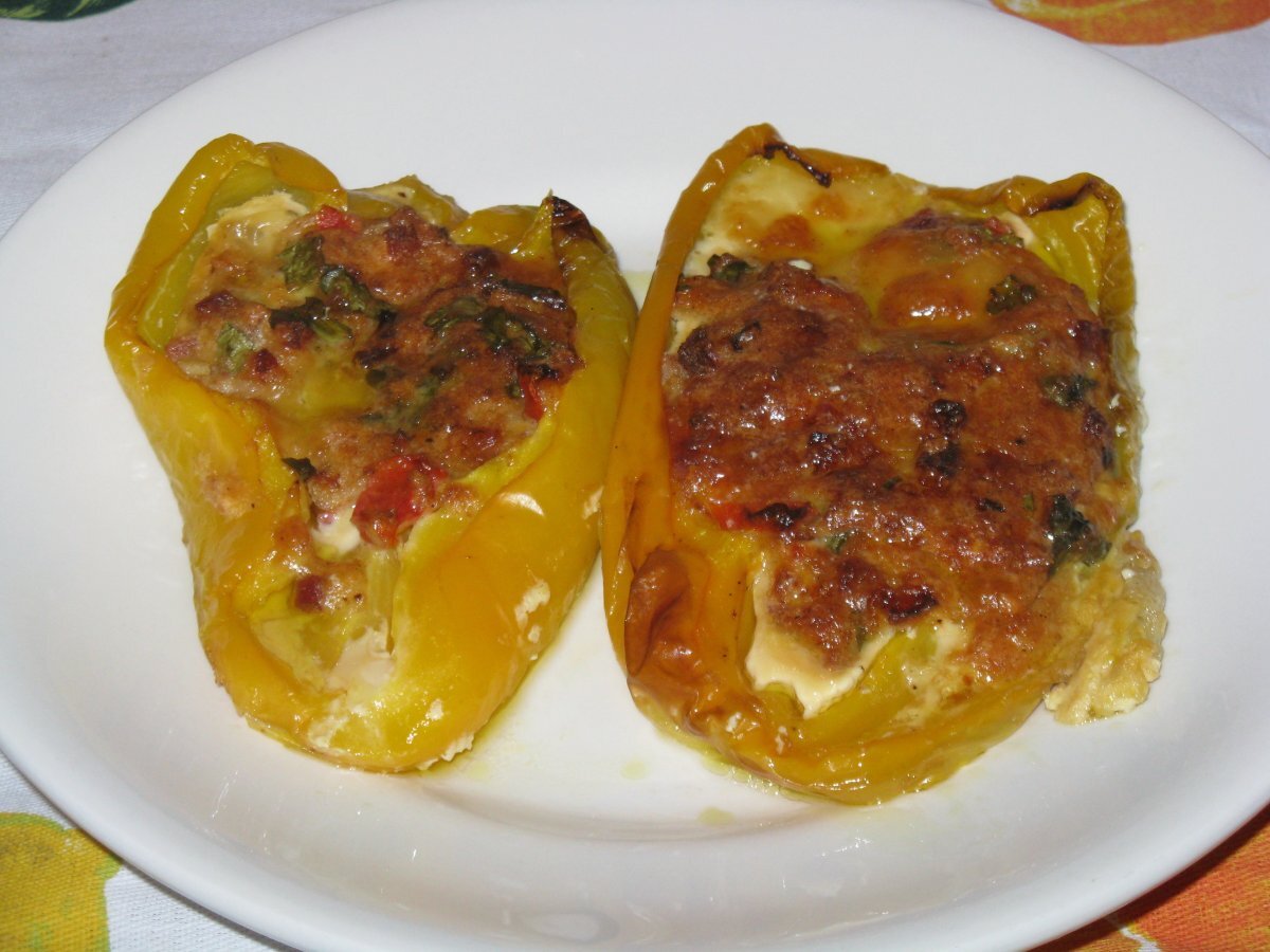 Buona giornata a tutti, finalmente oggi è venerdì e quindi possiamo dire che questa settimana è finita. Stamattina vi rendo partecipi della mia cena: pesante direte voi, per me assolutamente no! Si tratta dei peperoni ripieni. Piatto molto estivo, pieno di colore, saporito e nutriente. Ho provato molte ricette, ma a quanto pare quella della mia mamma vince. Non me ne vogliate, ma io li adoro così! Passiamo quindi alla ricetta,non vorrei annoiavi con inutili parole...