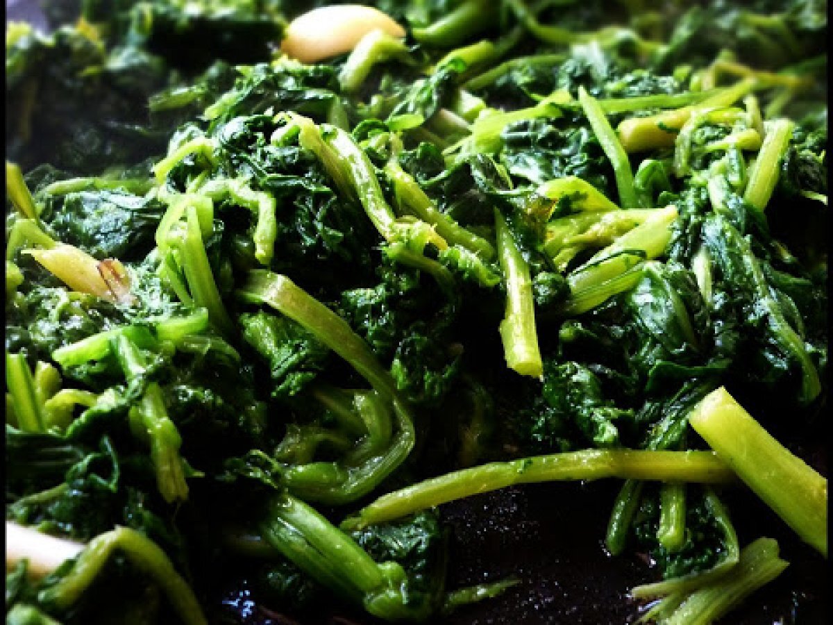 - Scolate per bene la verdura. Rosolate in padella per una decina di minuti con olio di oliva, aglio intero, alloro fresco a piccoli pezzetti e peroncino e din fine spolverate con della scorzetta di limone grattugiata. Mettete da parte, temporaneamente.