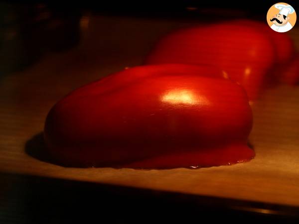 Tagliate il peperone a metà, svuotate l'interno e posatelo su una leccarda ricoperta da carta da forno. La buccia deve essere rivolta verso l'alto.