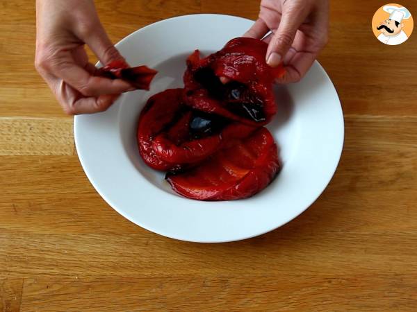 Ora mettete il peperone in un sacchetto del congelatore, chiudetelo e lasciate riposare 10 minuti. Passato questo tempo, riaprite il sacchetto e spellate il peperone.