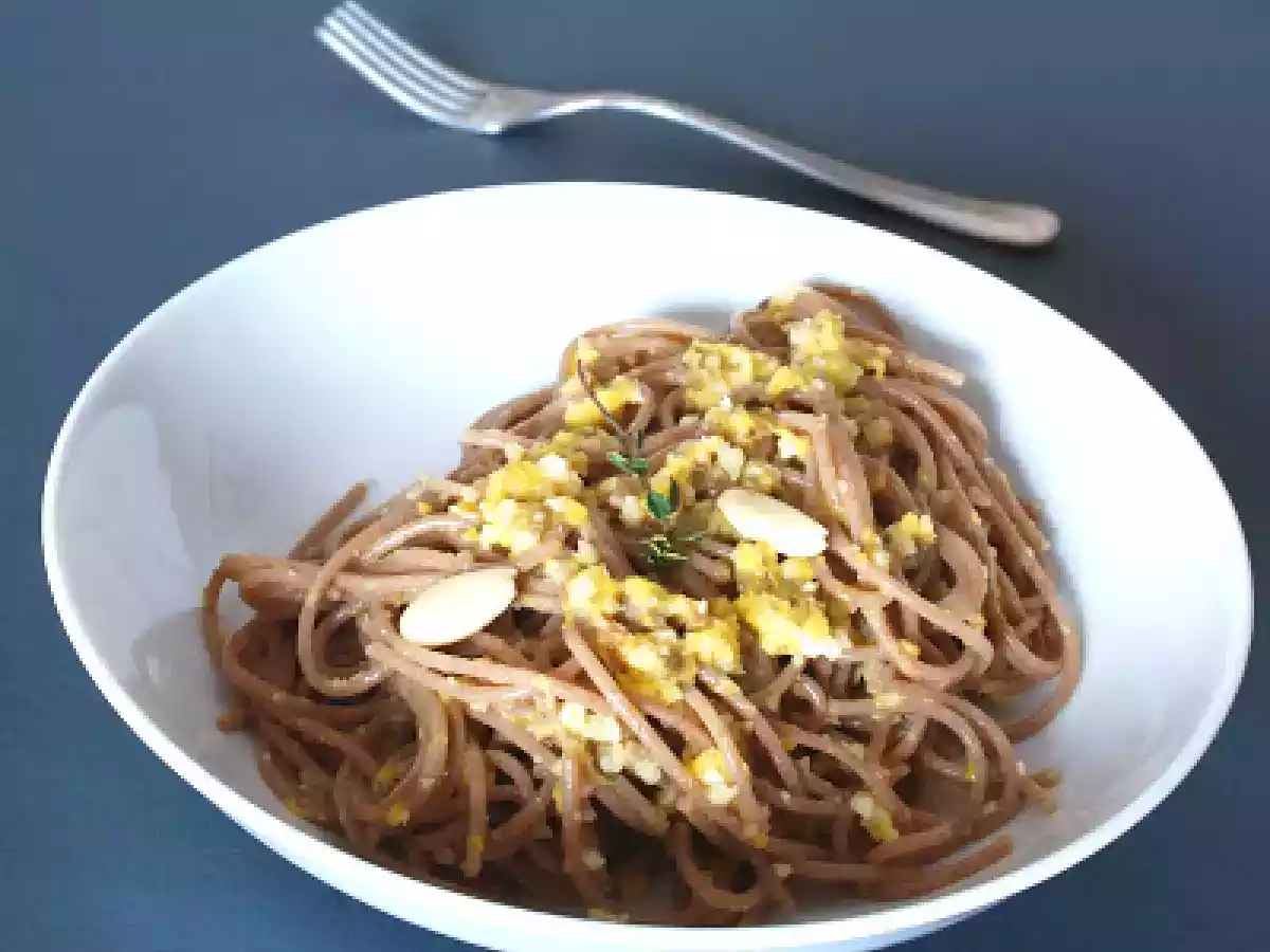 - Sbucciate le arance e mettete nel bicchiere del mixer la polpa delle arance, il timo, le mandorle ed i capperi dissalati.