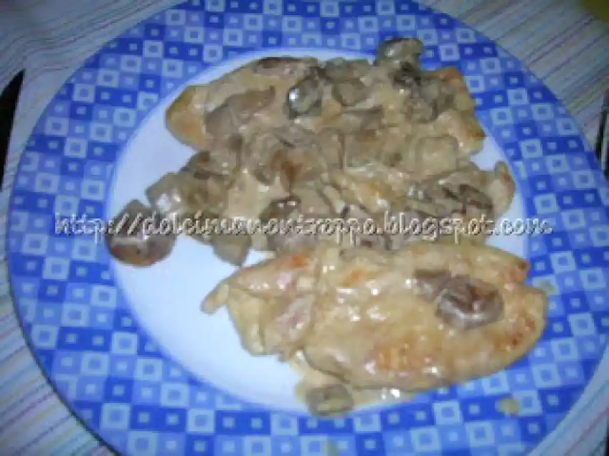 Petto di pollo ai funghi porcini vota adesso PrecedenteProssimo Portata principalefacile45 min Invia questa ricetta ad un amico Stampa la ricetta Contatta l'autore della Ricetta Pubblica la foto di questa ricetta Ingredienti 4 4 petti di pollo in fette 200 grammi di funghi porcini surgelati 50 grammi di burro 30 grammi di olio extravergine 100 grammi di marsala 50 grammi di panna 20 grammi di prezzemolo 50 grammi di farina sale pepe