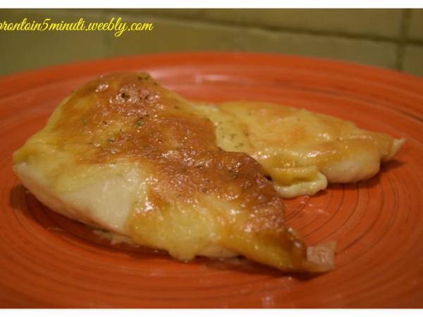 Se siete stanchi di mangiare il solito pettto di pollo alla piasta, non potete non provare questa ricetta facile e veloce. La carne rimarrà bella morbida ve lo garantisco. La prima cottura del pollo non deve essere completa, si finirà di cuocere in forno avvolto dalla scamorza. Quando quest'ultima si sarà sciolta e formerà la crosticina, il pollo è pronto Con 2 ingredienti porterete in tavolo un secondo piatto davvero invitante e..... filante. Buon Appetito!!!