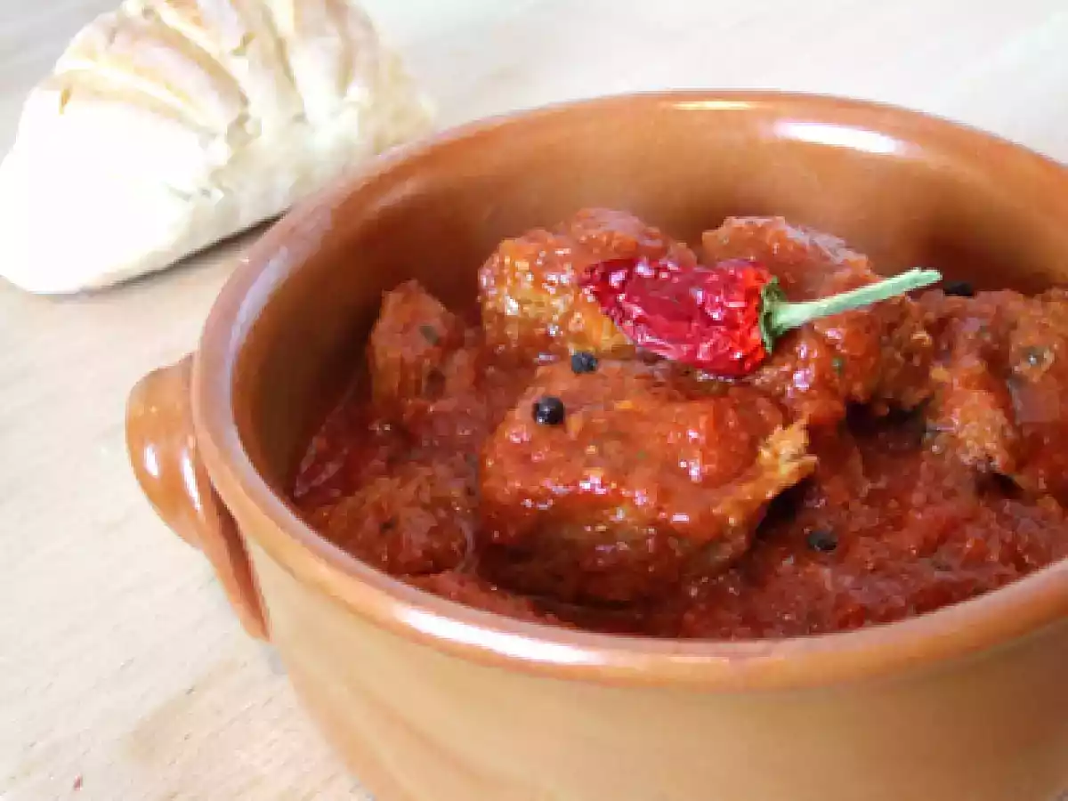 Ricetta completamente sbagliata. 1) la carne di puledro non va bene: figuriamoci se ai tempi andati il puledro che doveva diventare cavallo che era l'unico animale di fatica in campagna per tirare l'aratro o il carretto lo cucinavano. Si cucinava il cavallo quando ormai non c'è la faceva piü a lavorare perciò la carne era durissima 2) perciò la carne, che per la cucina povera dei pezzetti era durissima, in quanto si usava il capocollo che è calloso quindi si ammorbidisce in cottura e il muscolo (ai contadini si dava quella perchè quella migliore se la mangiavano i padroni delle terre e i mezzadri) , si cucinava in 2 fasi. Prima bollita intera e non a pezzi (sbagliatissimo) innsaporita con 5/6 spicchi d'aglio, abbondanti rosmarino, alloro e origano freschi assolutamente non secchi e pepe in grani, salando quanto basta 3) dopo la bollitura per almeno 2/3 ore la si lascia riposare tutta la notte perchè raffreddando si compatti e si possa tagliare meglio e il giorno dopo la si taglia a medaglioni alti non piú di 2 dita, perché va mangiata nel pane, tassativamente filone di grano 4) a questo punto in un tegame di coccio si soffriggono a fuoco medio basso in abbondante olio extravergine di oliva cipolla, qualche foglia di alloro e abbondante peperoncino (lu diavolicchiu nuesciu). Niente carote. Niente sedano. Orrore. Quelli teneteli per il ragù alla bolognese. Quando la cipolla è imbiondita si versano alcuni cucchiai di concentrato di pomodoro allungando con il brodo di cottura della carne già salato e filtrato cosí che risulti un sugo molto lento non denso. A questo punto, solo a questo punto si immergono i medaglioni di carne che non vanno assolutamente soffitti (altro errore pacchiano)altrimenti induriscono, si copre, si abbassa la fiamma e si lascia pipare o sobbollire lentamente per altre 2 ore controllando che il sugo non sia nè troppo denso nè troppo liquido perciò se si asciuga basta aggiungere un po' di brodo di cottura. Volendo si può aggiunger