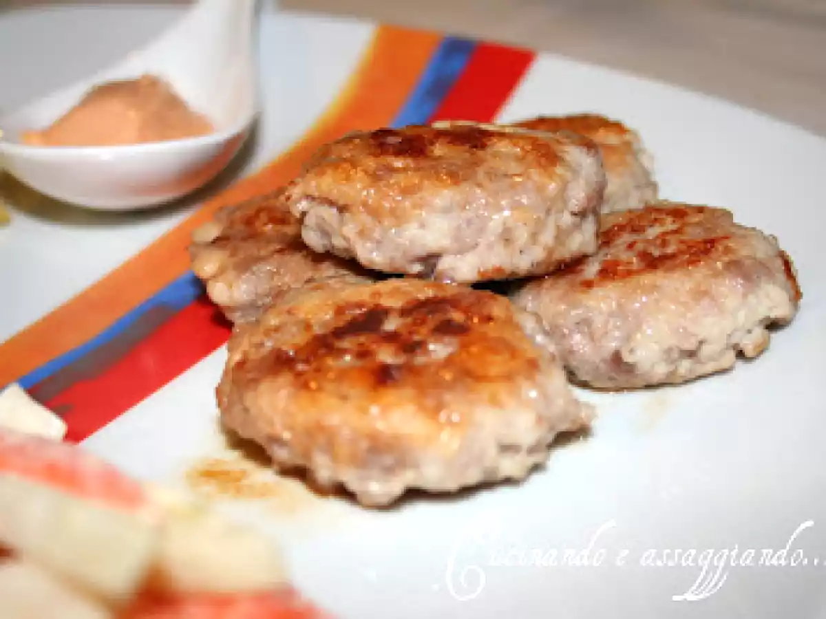 Piccoli hamburger insoliti con contorni sfiziosi PrecedenteProssimo Portata principalefacile1 h 5 m Invia questa ricetta ad un amico Stampa la ricetta Contatta l'autore della Ricetta Pubblica la foto di questa ricetta Ingredienti 4 300 g di petto di pollo macinato 300 g di salsiccia 2 carote piccole un finocchio due cucchiai abbondanti di maionese allo yogurt due patate sale paprika olio di semi salsa rosa