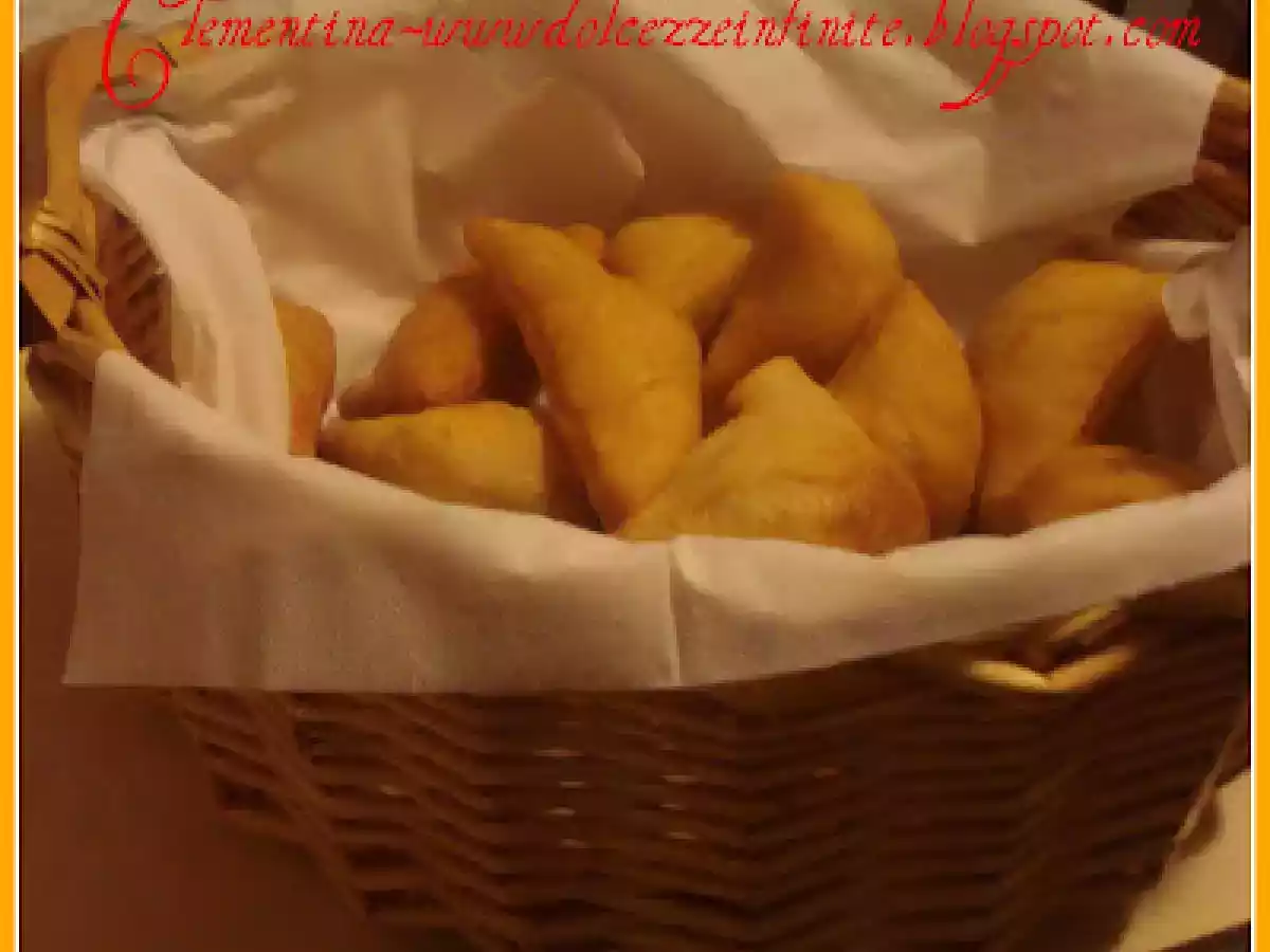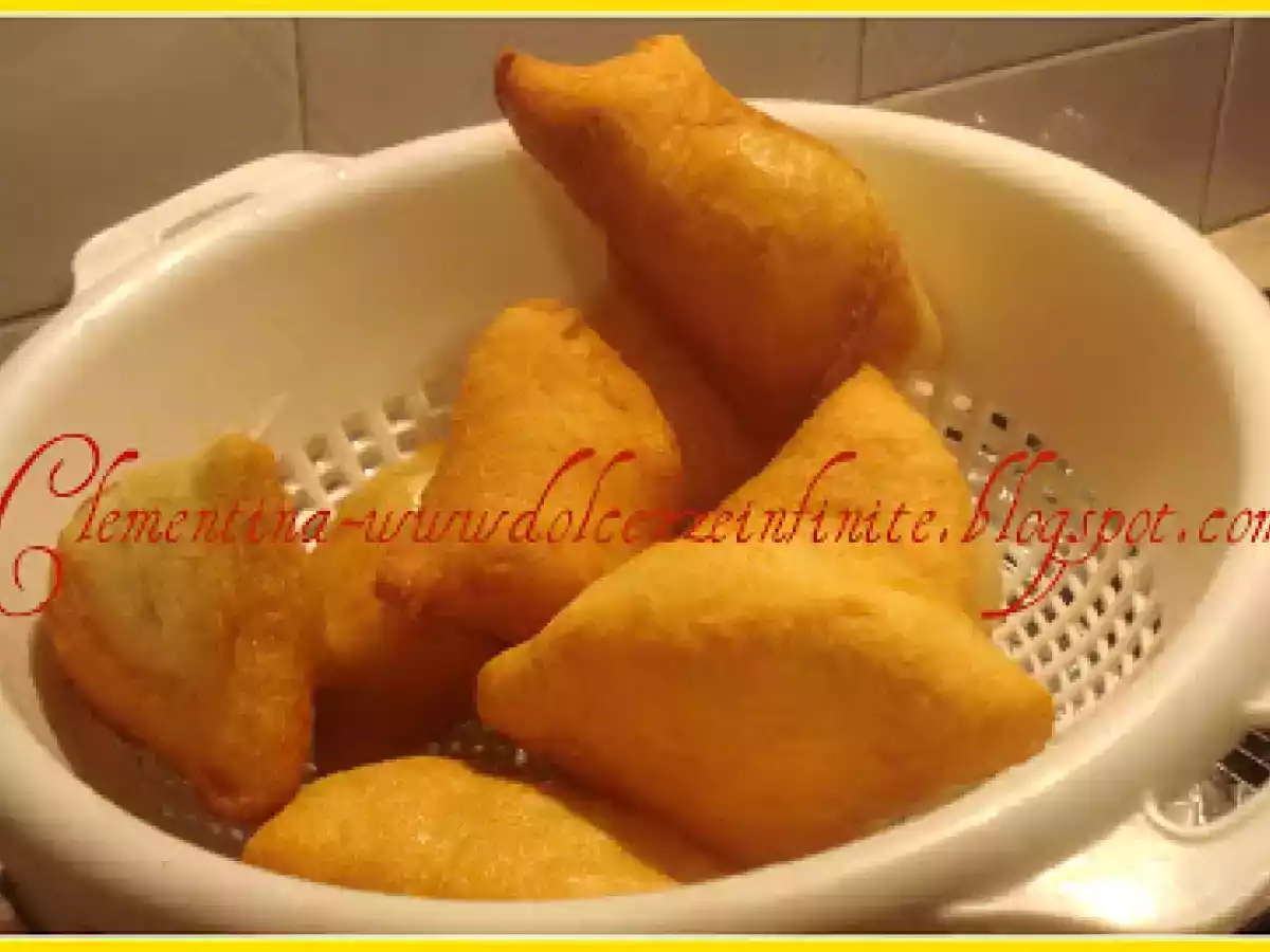 Pizze fritte o pettole di natale PrecedenteProssimo Portata principalefacile1 ora Invia questa ricetta ad un amico Stampa la ricetta Contatta l'autore della Ricetta Pubblica la foto di questa ricetta Ingredienti 4 1 kg. di farina piu 200 g di farina per imapastare 1 cucchiaio da tavola di sale grosso da cucina 2 patate lesse 1 pezzo di lievito di birra 450 g circa di acqua olio extravergine di oliva per friggere