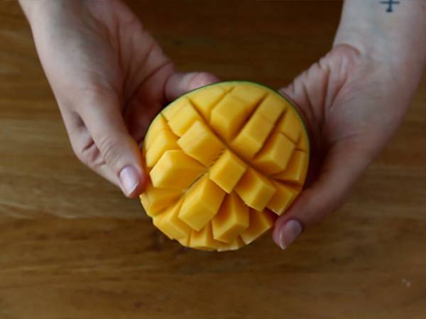 Lavavate tutte le verdure. Sbucciate la carota e grattugiatela. Tagliate i ravanelli ed il cetriolo a lamelle sottili. Tagliate l'avocado ed il mango a cubetti e versate un po' di succo di limone sull'avocado affinché non si annerisca.