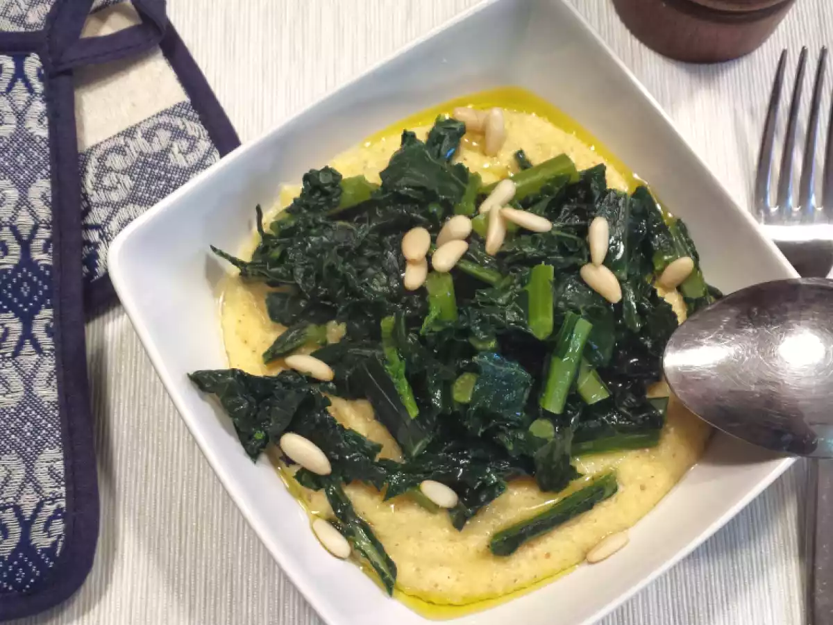 Oggi vi propongo la ricetta di una polenta in bianco,condita con l cavolo nero. Un piatto leggero, senza grassi aggiunti se non un filo di olio a crudo. Per questa preparazione ho utilizzato una farina per polenta integrale senza glutine.