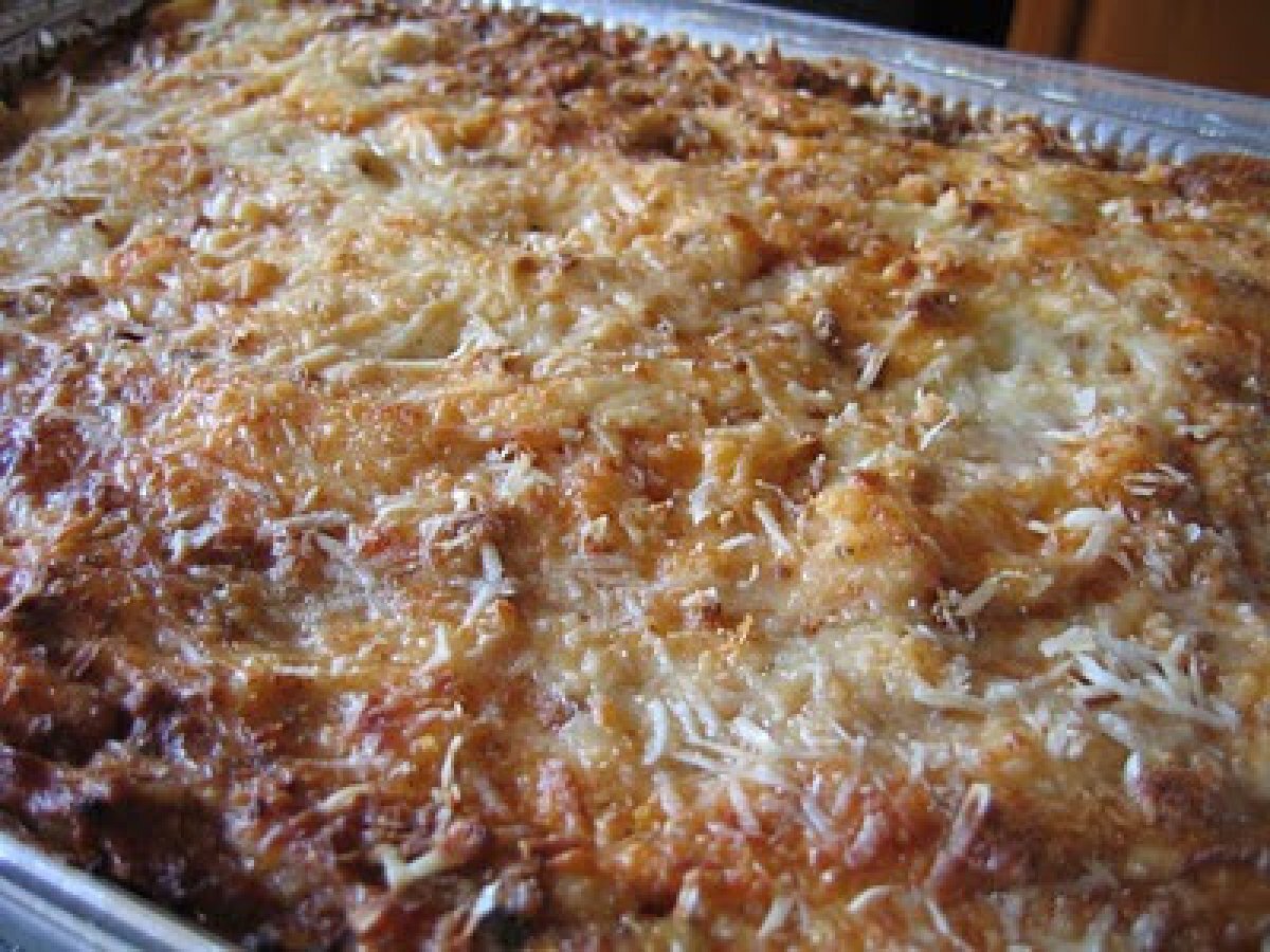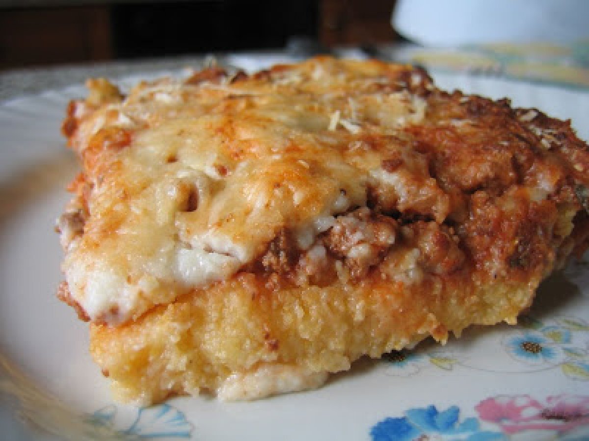 - A questo punto non mi è rimasto che assemblare il tutto. Imburrato una pirofila, e iniziato a mettere uno strato di fette di polenta, ragù, besciamella e una generosa spolverata di parmigiano grattugiato, così proseguito a strati alterni, terminando con un po' di ragù mescolato alla besciamella e abbondante parmigiano. Infornato a 180° per circa 30 minuti.