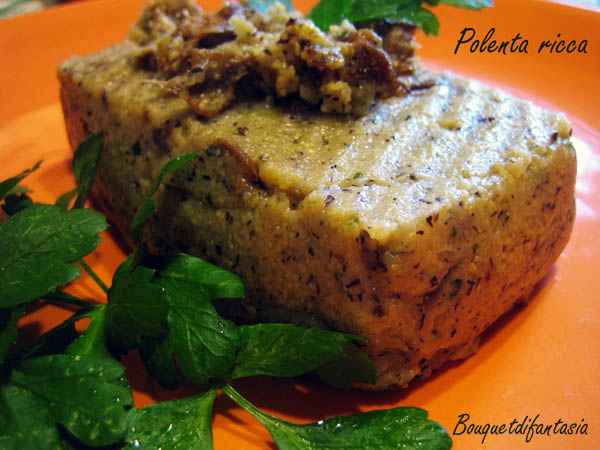 Polenta ricca Portata principalefacile1 ora Invia questa ricetta ad un amico Stampa la ricetta Contatta l'autore della Ricetta Pubblica la foto di questa ricetta Ingredienti 2 polenta integrale bio acqua sale funghi porcini secchi alici salate cipolla olio extravergine di oliva prezzemolo