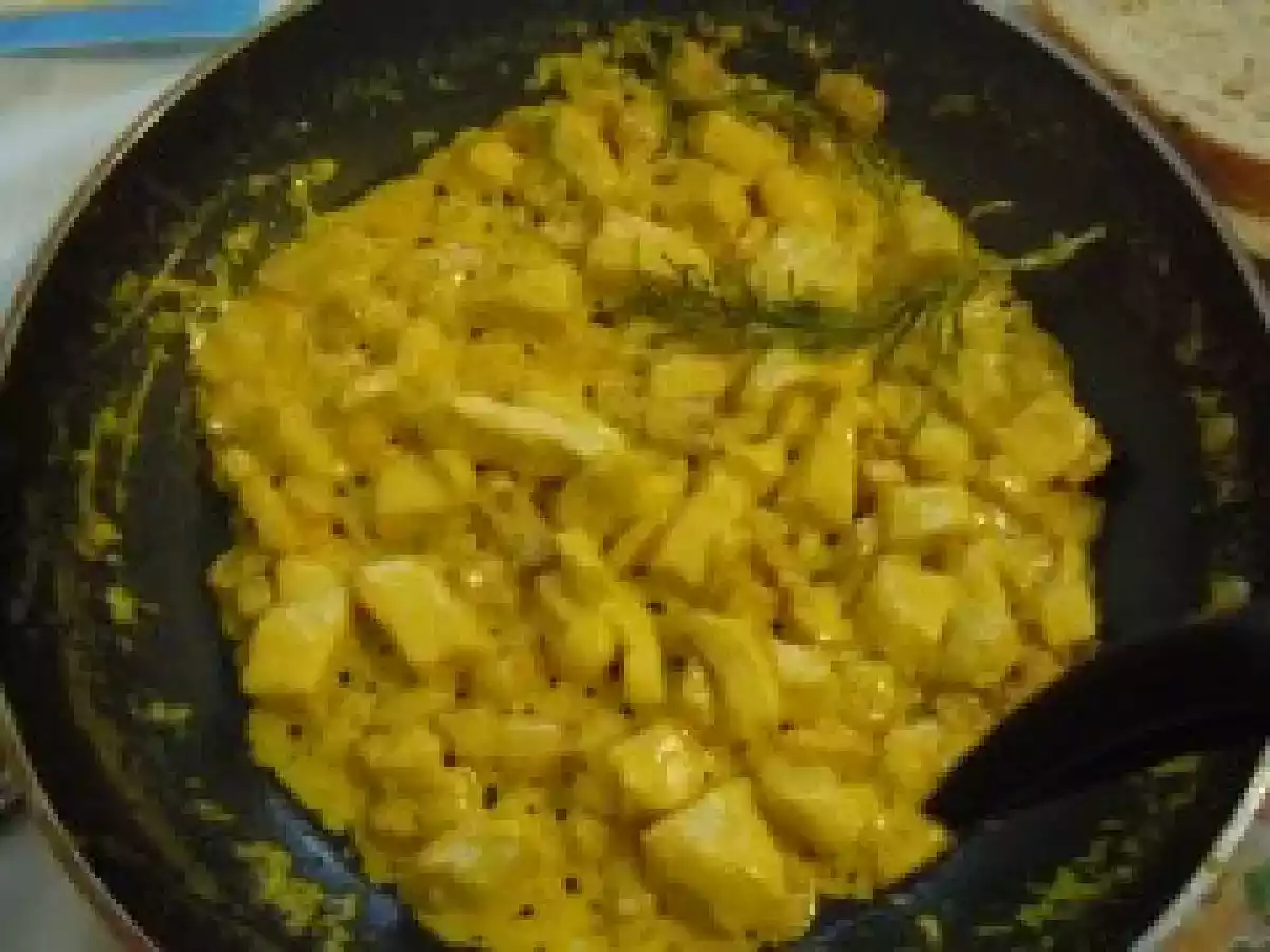 Pollo alla panna e zafferano Portata principalefacile50 min2067 Kcal Invia questa ricetta ad un amico Stampa la ricetta Contatta l'autore della Ricetta Pubblica la foto di questa ricetta Ingredienti 2 2 fettine di pollo una confezione di pancetta affumicata a dadini mezza scatolina di panna da cucina una bustina di zafferano un rametto di rosmarino olio mezzo bicchiere di vino bianco Costo stimato: 15.73Euros€ (7.87€/Porzioni)