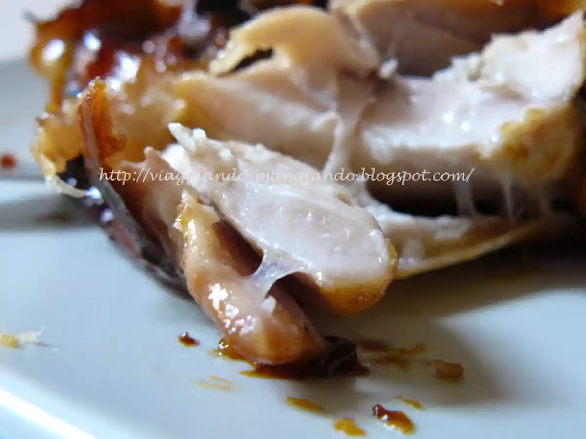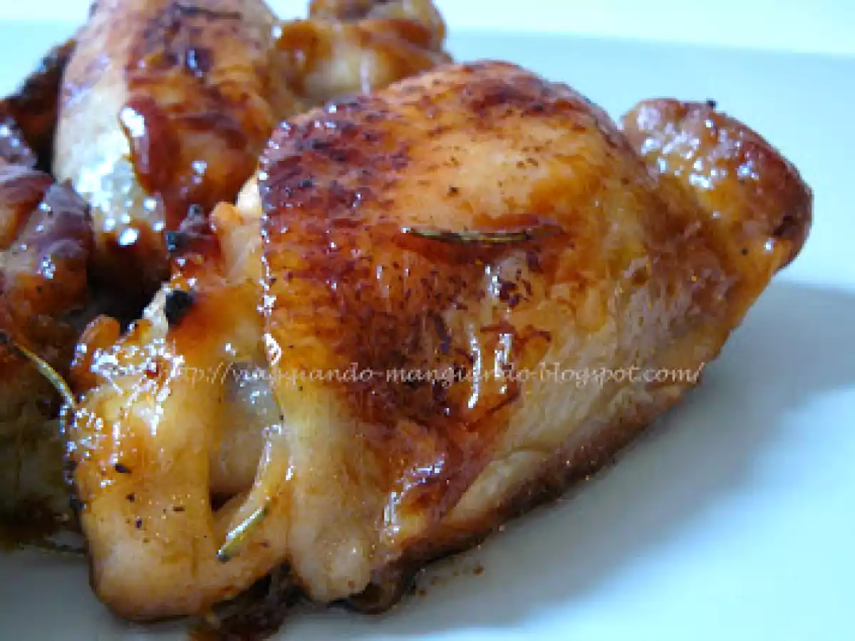 Pollo arrosto allo sciroppo d'acero PrecedenteProssimo Portata principalefacile1 h 10 m Invia questa ricetta ad un amico Stampa la ricetta Contatta l'autore della Ricetta Pubblica la foto di questa ricetta Ingredienti 3 6 sovracosce di pollo 4 alette di pollo 2 limoni sciroppo d'acero rosmarino fresco o secco 1 cipolla 3 spicchi d'aglio schiacciati olio, sale, pepe