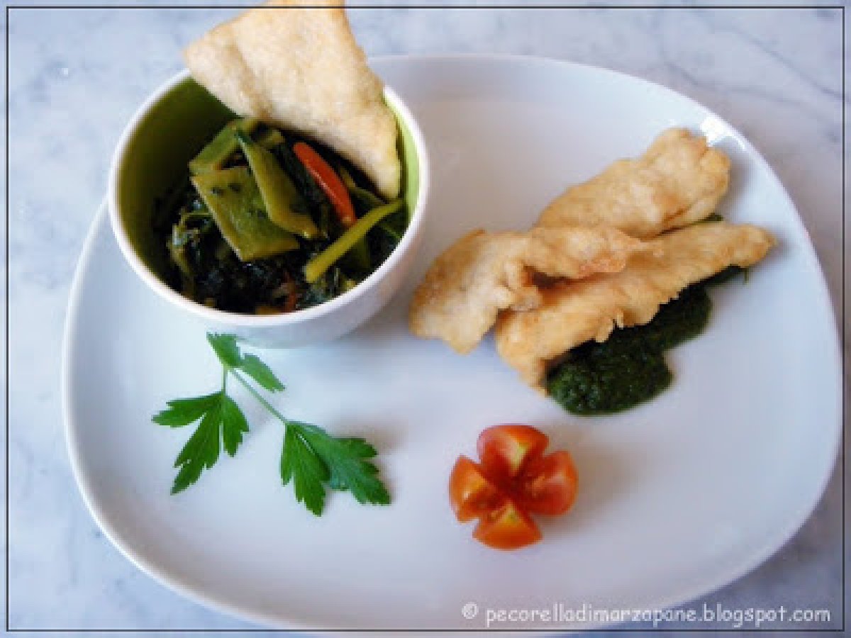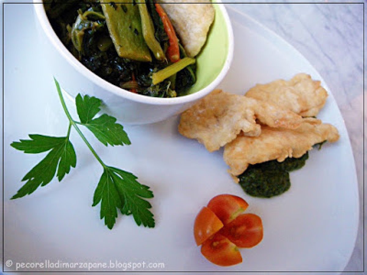 Pollo croccante in farina di riso e contorno d'orto PrecedenteProssimo Portata principalefacile40 min Invia questa ricetta ad un amico Stampa la ricetta Contatta l'autore della Ricetta Pubblica la foto di questa ricetta Ingredienti 4 500 g di Taccole 2 mazzetti di Spinaci 200 g di pomodorini 1 spicchio d'aglio Olio extravergine d'oliva Sale e peperoncino 1 mazzetto di Prezzemolo tritato 250 g di fesa di Pollo 1 cucchiaio di Farina di riso Olio per friggere