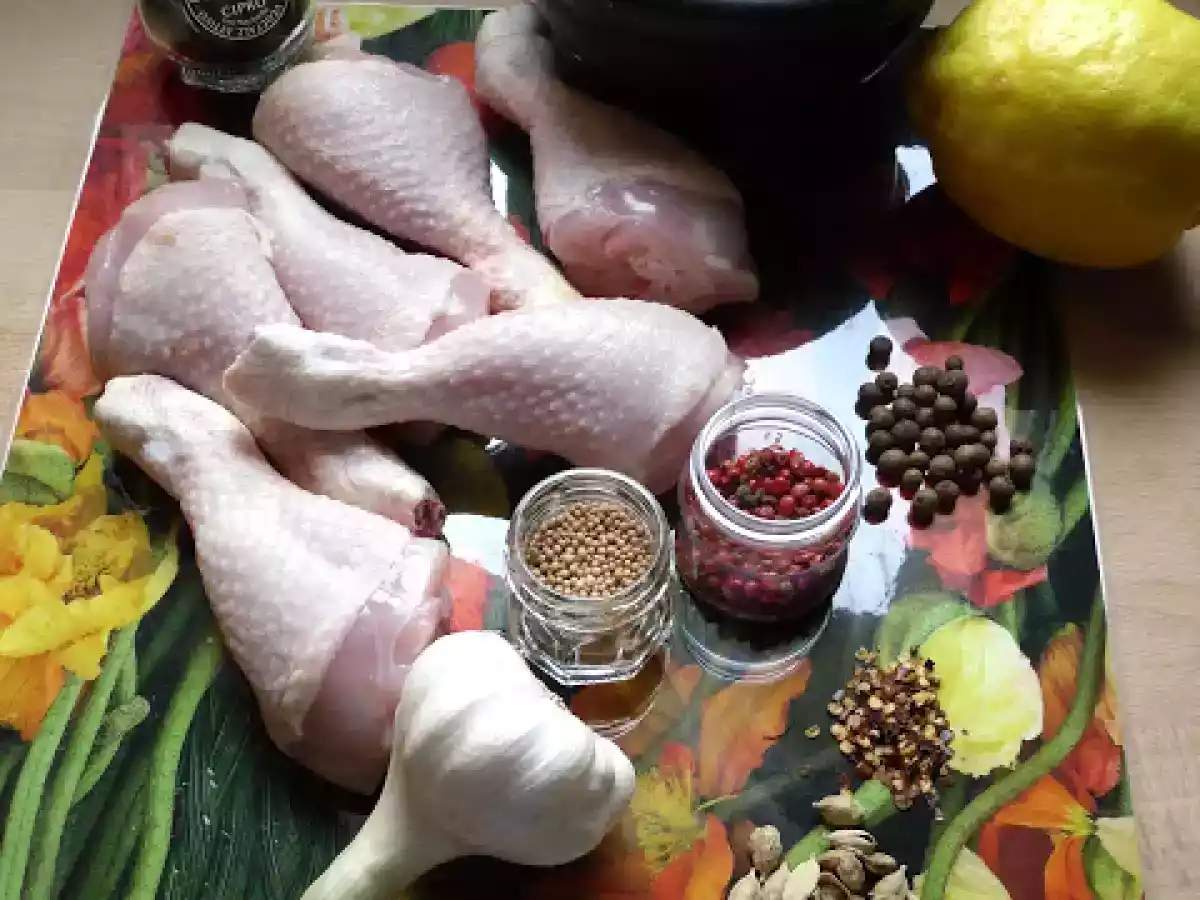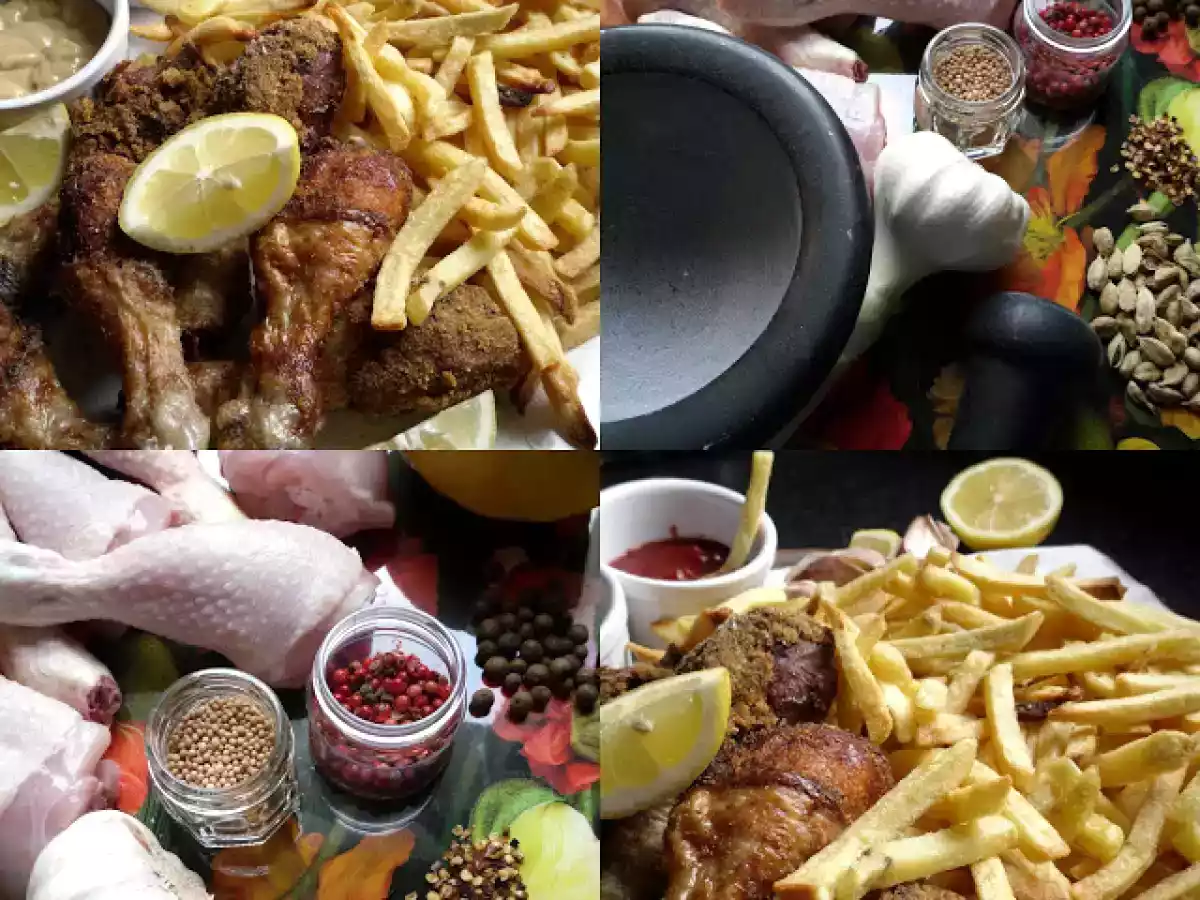 Pollo fritto in una impanatura saporita alle spezie vota adesso PrecedenteProssimo Portata principalefacile1 h 25 m Invia questa ricetta ad un amico Stampa la ricetta Contatta l'autore della Ricetta Pubblica la foto di questa ricetta Ingredienti 4 fusi di pollo limone olio per friggere sale sale nero pepe aglio farina Per le spezie ho pestato al mortaio : pepe rosa cardamomo senape peperoncino pimento un cucchiaino di garam masala
