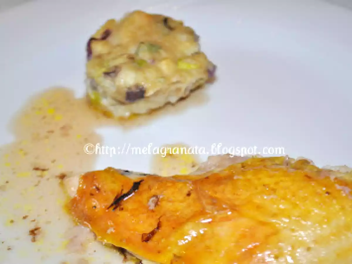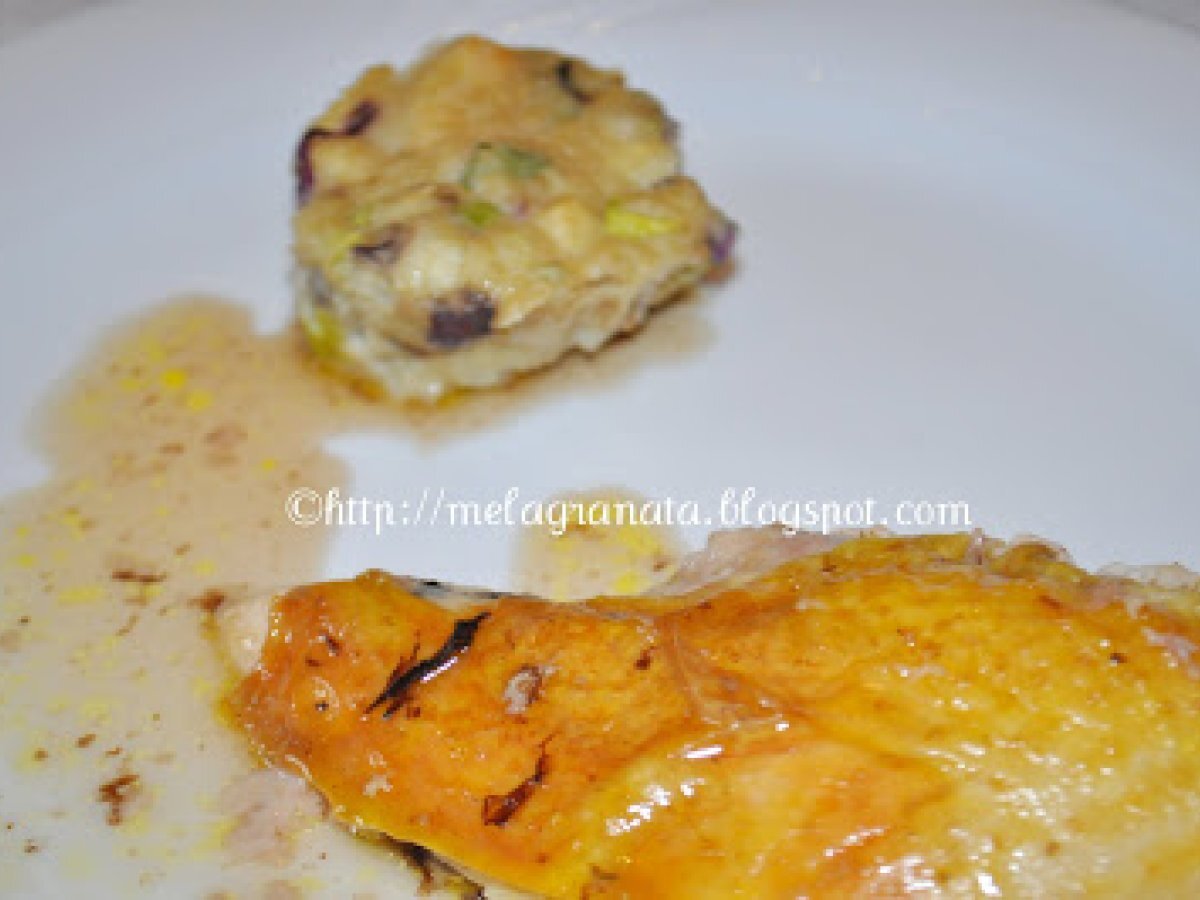 Pollo ripieno di magro al profumo di agrumi e tè. PrecedenteProssimo Portata principalefacile1 h 5 m Invia questa ricetta ad un amico Stampa la ricetta Contatta l'autore della Ricetta Pubblica la foto di questa ricetta Ingredienti 4 1 pollo 200 g pane raffermo buccia di limone, mandarino, arancia 1 uovo le foglie verdi di 2-3 cipollotti di tropea parmigiano, 4 cucchiai 250 g di tè sale, pepe, noce moscata, cannella