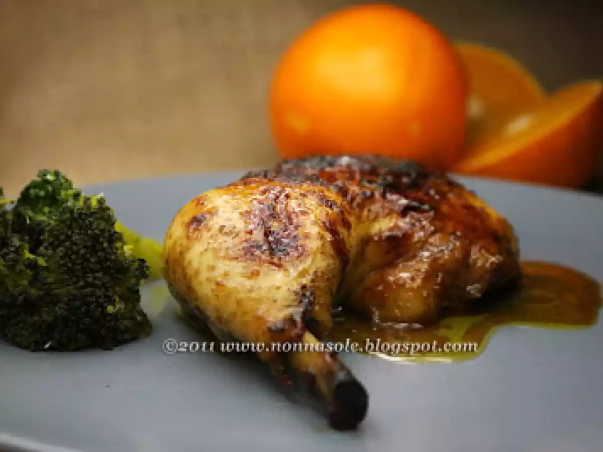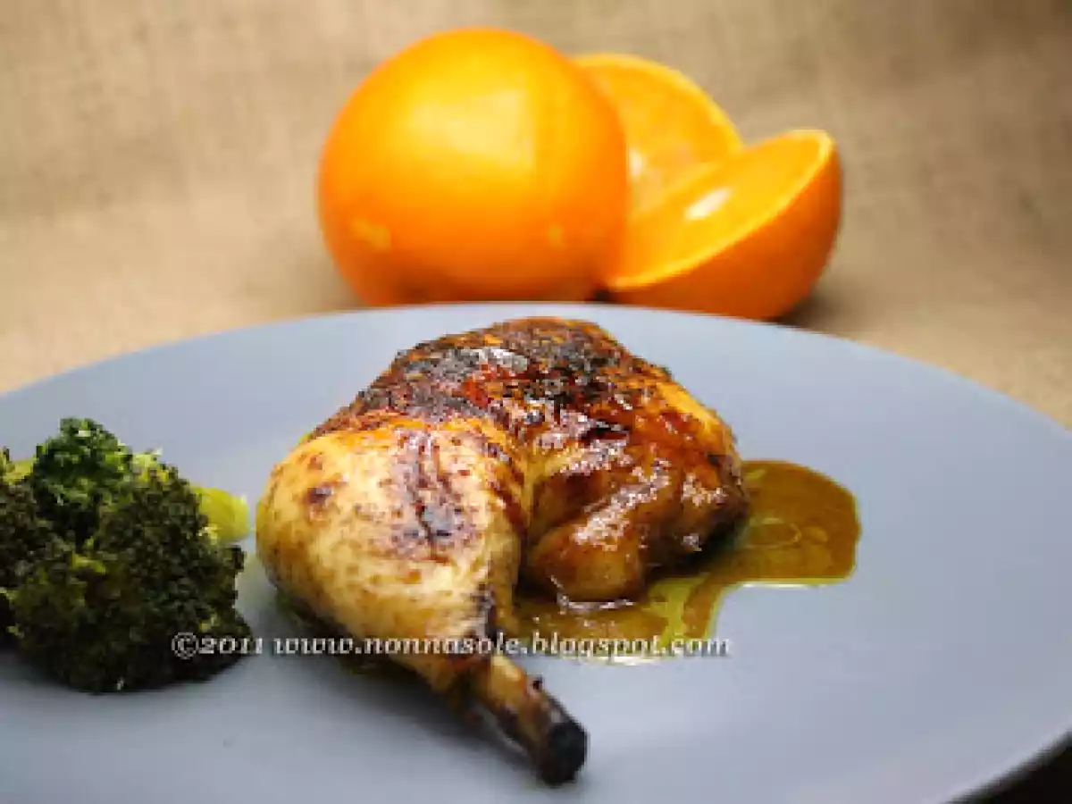 Pollo ruspante con l'arancia vota adesso PrecedenteProssimo Portata principalefacile1 h 5 m Invia questa ricetta ad un amico Stampa la ricetta Contatta l'autore della Ricetta Pubblica la foto di questa ricetta Ingredienti 5 Pollo 1 Kg e ½ Il succo di 2 arance Acqua 120 g Brandy 80 g Miele 1 cucchiaio Paprika dolce Ariosto Insaporitore per carni in umido Ariosto