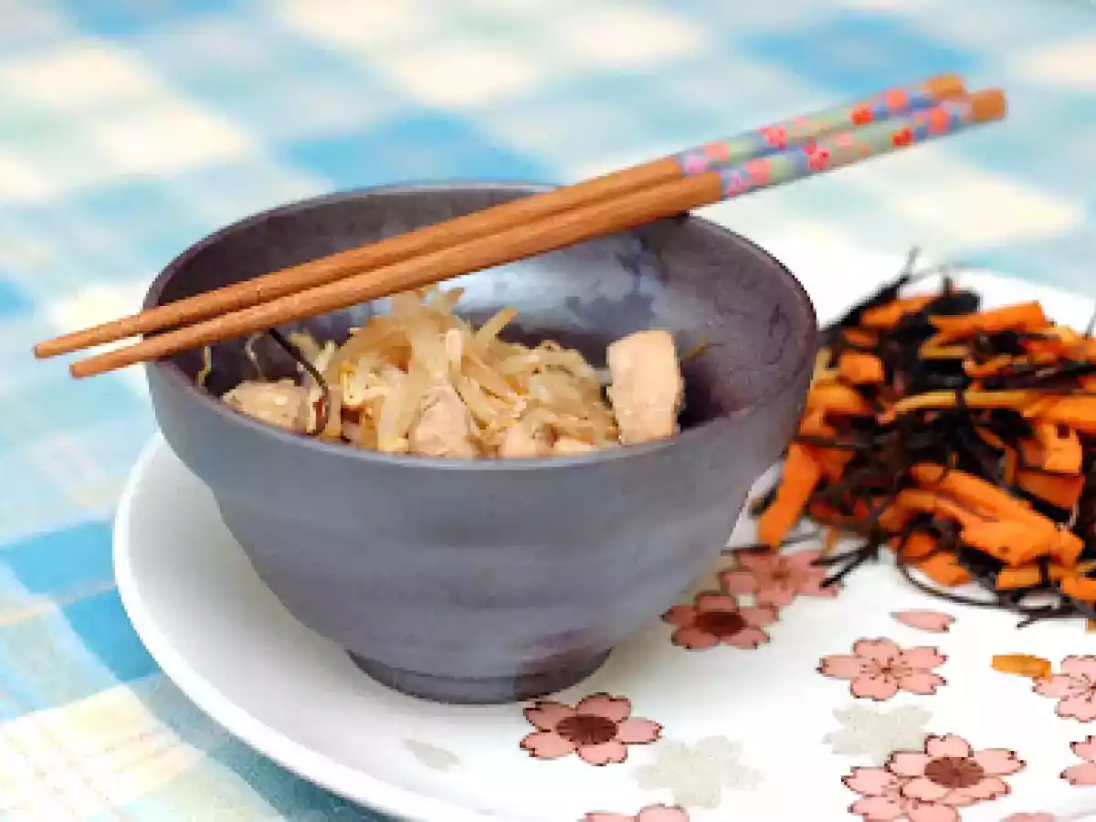 Pollo saltato con germogli ed insalata di alghe e carote... japan style! vota adesso PrecedenteProssimo Portata principalefacile1 ora Invia questa ricetta ad un amico Stampa la ricetta Contatta l'autore della Ricetta Pubblica la foto di questa ricetta Ingredienti 2 per il pollo saltato ;: 2 fette di petto di pollo tagliate a striscioline 2 cucchiai di salsa di soia 2 cucchiai di mirin 1 cucchiaio di acqua germogli di soia semi di sesamo Per l'insalata di alghe: 2 carote sbucciate e tagliate a julienne 15 g di alghe arame succo di un limone un cucchiaio di salsa di soia