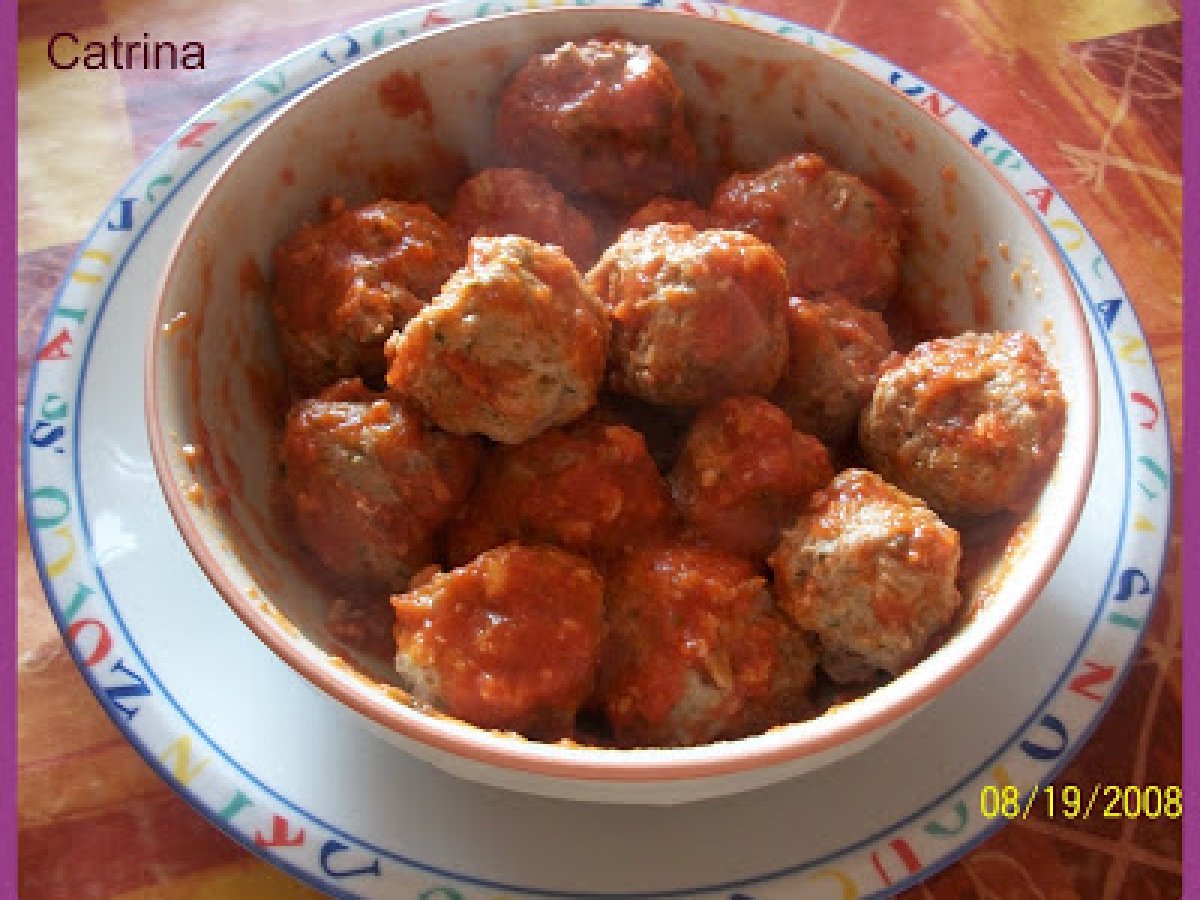 Polpette al sugo PrecedenteProssimo Portata principalefacile45 min Invia questa ricetta ad un amico Stampa la ricetta Contatta l'autore della Ricetta Pubblica la foto di questa ricetta Un'ottima ricetta per preparare le polpette al sugo con il bimby Ingredienti 2 250 g carne magra di bovino 100 g prosciutto cotto 1 uovo 50 g zucchina 40 g formaggio gratuggiato prezzemolo, sale ,pepe aglio 350 g passata di pomodoro 10 g olio extravergine di oliva