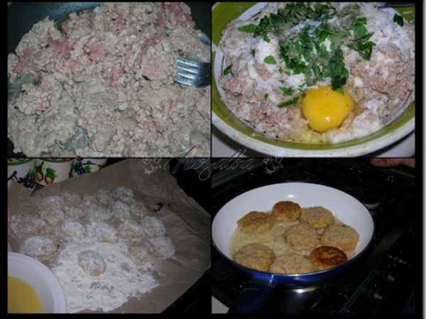 Polpette di tacchino, besciamella e pecorino vota adesso PrecedenteProssimo Portata principalefacile45 min Invia questa ricetta ad un amico Stampa la ricetta Contatta l'autore della Ricetta Pubblica la foto di questa ricetta Ingredienti 6 600 g di fesa di tacchino macinato 30 g di burro 3 dl di latte 3 uova 8 cucchiai di pecorino grattugiato farina, pane grattugiato, prezzemolo tritato, noce moscata, sale, pepe e olio per friggere