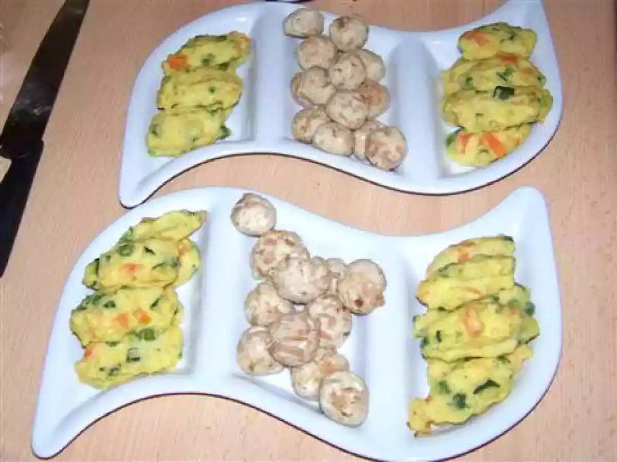 Polpettine alle verdure e con il tonno PrecedenteProssimo Portata principalefacile50 min Invia questa ricetta ad un amico Stampa la ricetta Contatta l'autore della Ricetta Pubblica la foto di questa ricetta Ingredienti 4 500 ml di latte parzialmente scremato 250 ml di acqua sale, noce moscata olio extravergine di oliva 2 carote 2 zucchine 1 tazza di pisellini 1 noce di burro 1 uovo pangrattato