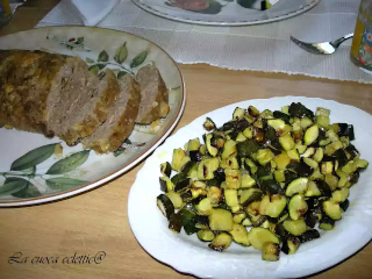 Polpettone al forno con contorno di zucchine PrecedenteProssimo Portata principalemedia1 h 37 m Invia questa ricetta ad un amico Stampa la ricetta Contatta l'autore della Ricetta Pubblica la foto di questa ricetta E 'facile ottenere un deli, basta provare. Ingredienti 4 360 g di bovino adulto, 80 g di pane raffermo, 50 g di scamorza affumicata, 1 uovo, 1,5 cucchiai di uva passa, 1 manciatina di pinoli, latte, olio extravergine di oliva, 1 aglio, prezzemolo, paprica, sale, per le zucchine: 4 zucchine 3 cucchiai di olio extravergine di oliva sale