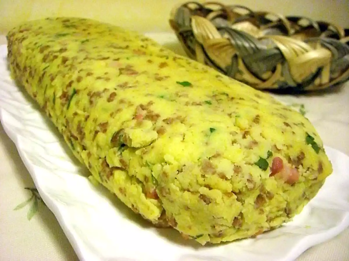 Polpettone di patate con ripieno di carciofi PrecedenteProssimo Portata principalefacile1 h 10 m1199 Kcal Invia questa ricetta ad un amico Stampa la ricetta Contatta l'autore della Ricetta Pubblica la foto di questa ricetta Una ricetta semplice per preparare un polpettone delizioso Ingredienti 2 5 carciofi 1 kg patate 3 uova 200 gr. macinato 150 gr. pancetta a dadini prezzemolo olio extravergine sale e pepe 2 cucchiai parmigiano grattugiato